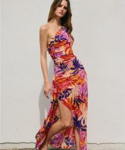 Pippa & Pearl Women’s Dresses Amaya Mesh One Sleeve Satin Skirt Maxi Dress – Sage Green | Sage Green
