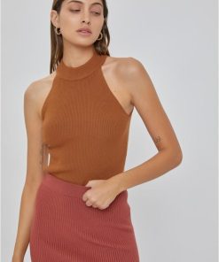 Pippa & Pearl Women’s Apparel Halter Neck Knit Stretch Sweater Top – Hunter Green | Hunter Green