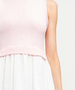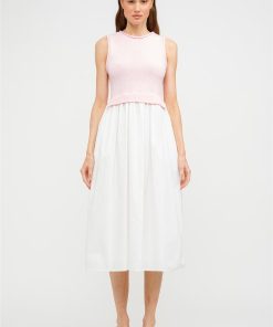 Pippa & Pearl Women’s Dresses Priscilla Knit Mixed Media Midi Dress | Pink & White