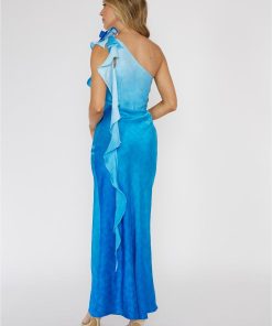 Pippa & Pearl Women’s Dresses Luna Aqua Blue Ombre Satin One Shoulder Maxi – Blue | Blue Ombre
