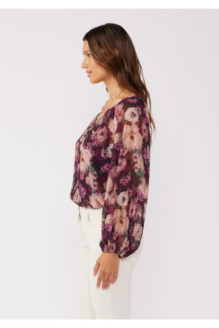Introducing our pleated Burgundy Floral Button Blouse! This playful top features a v-neck, long sleeves, and unique floral pattern. Perfect for adding a pop of color and personality to any outfit. Button it up for a more polished look or leave it open for a casual vibe.