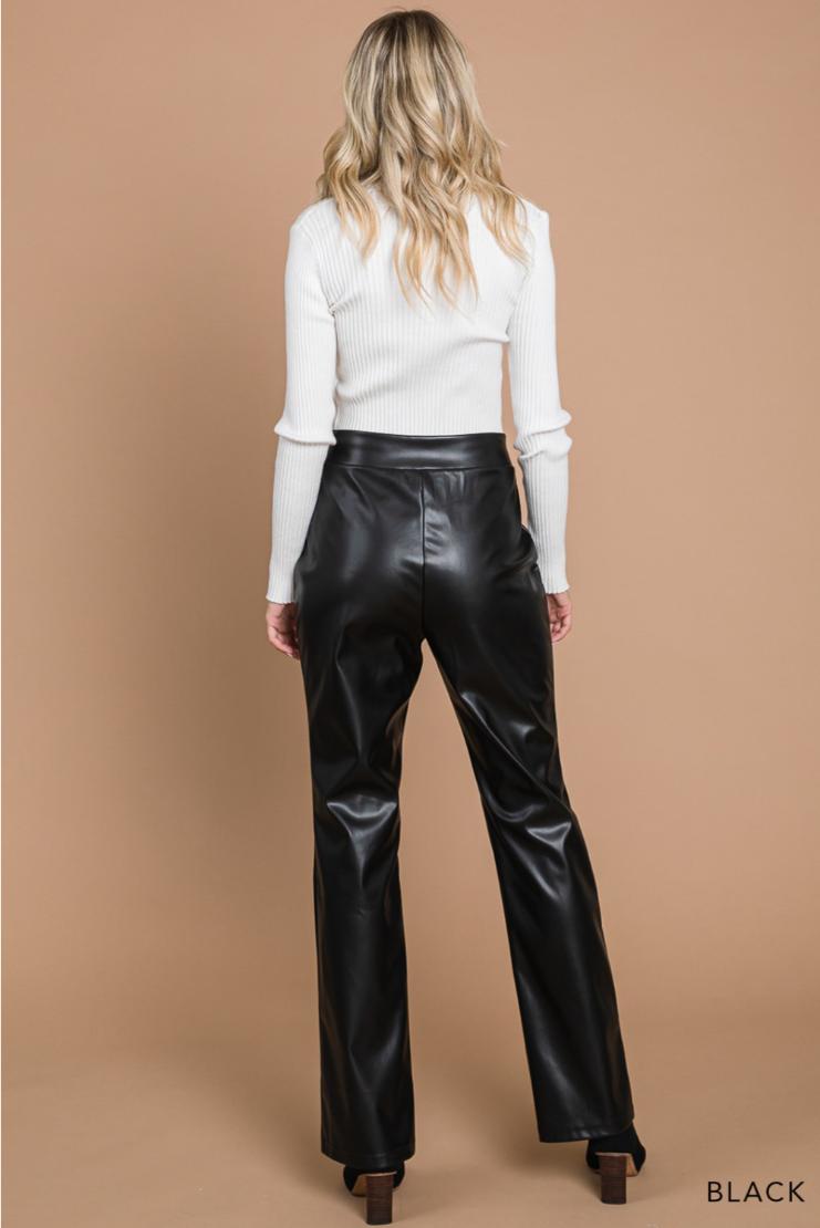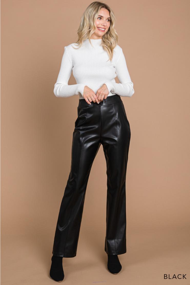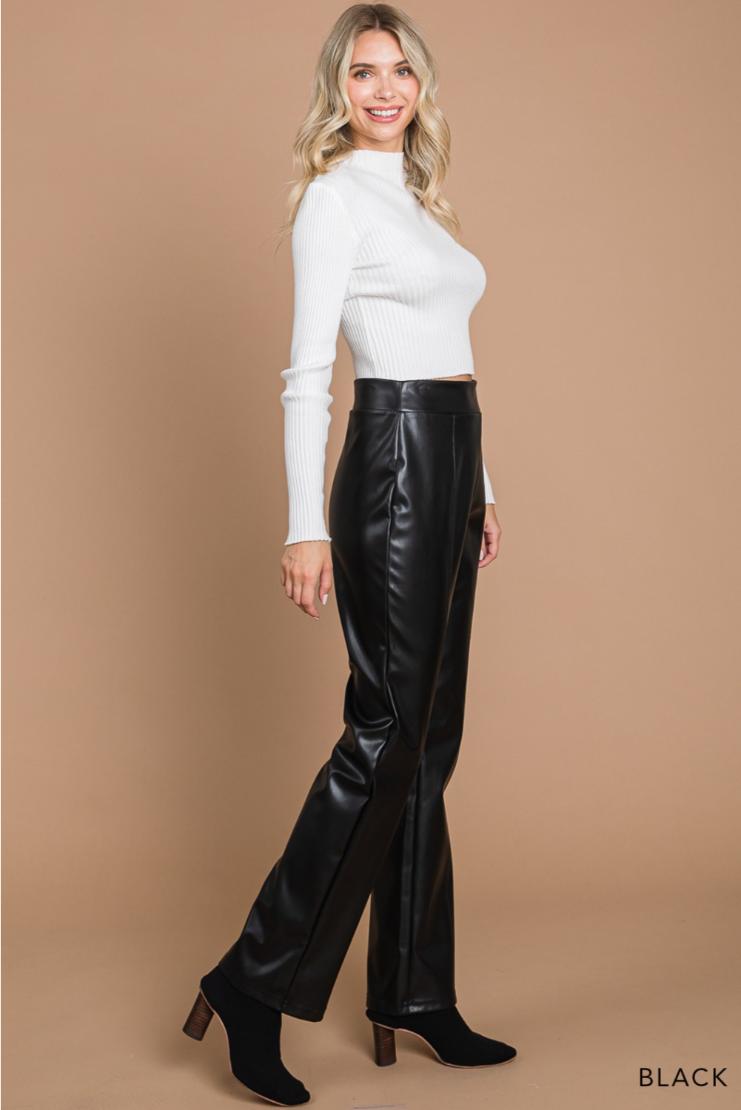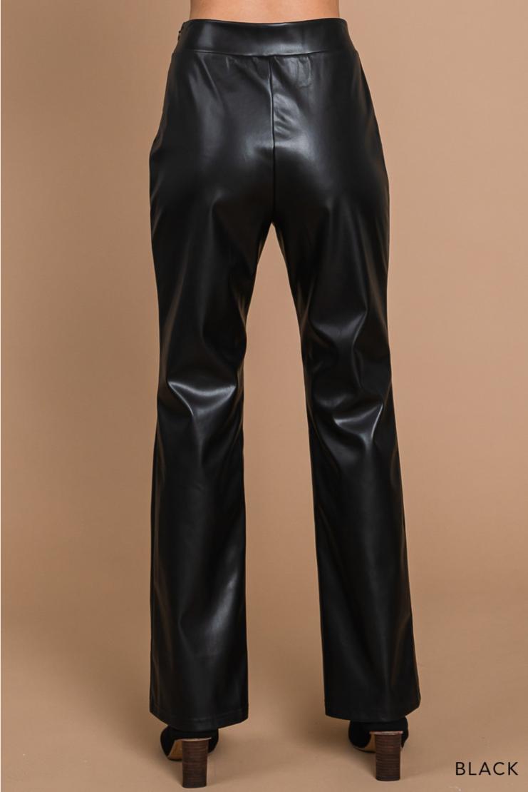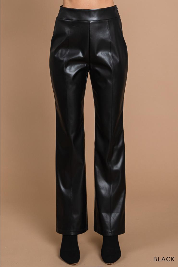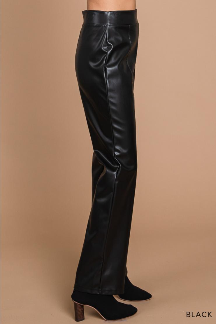 A glossy, smooth faux-leather finish elevates these straight-leg pants cut in a flawless silhouette that compliments every body type.