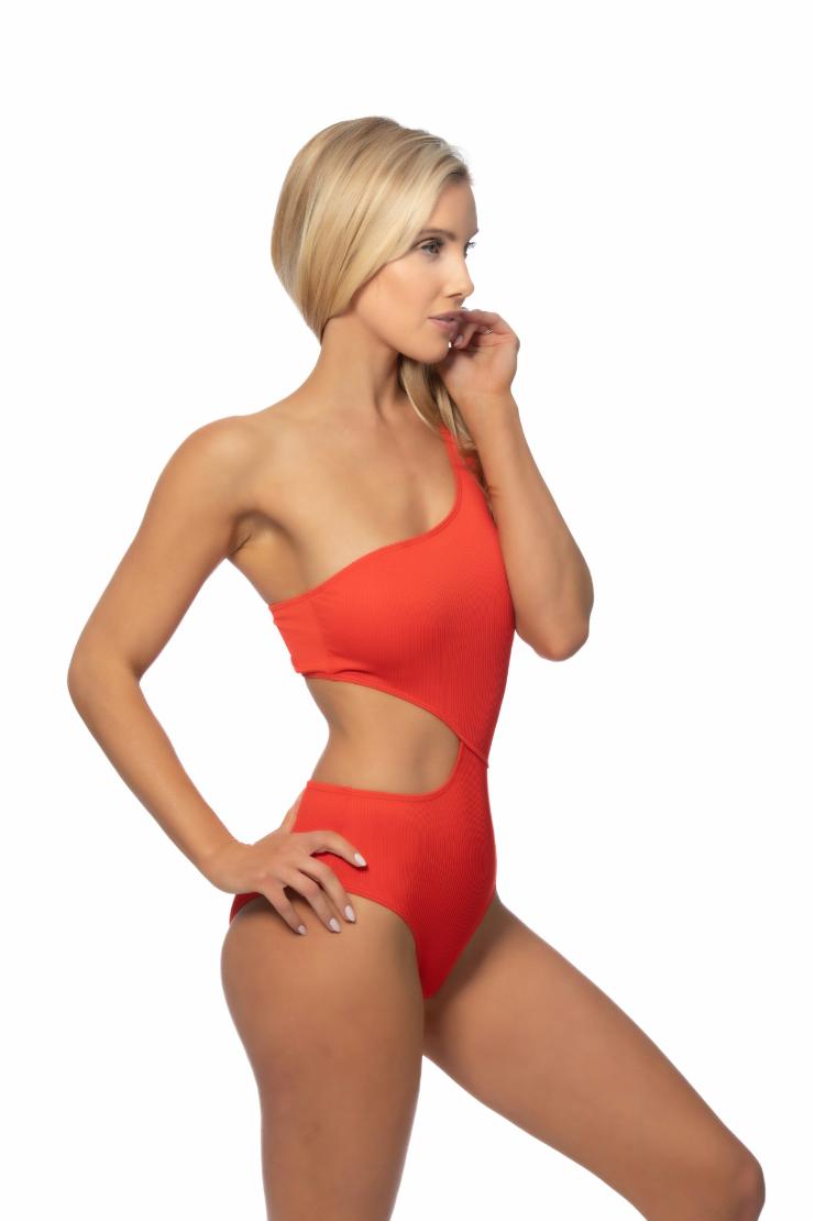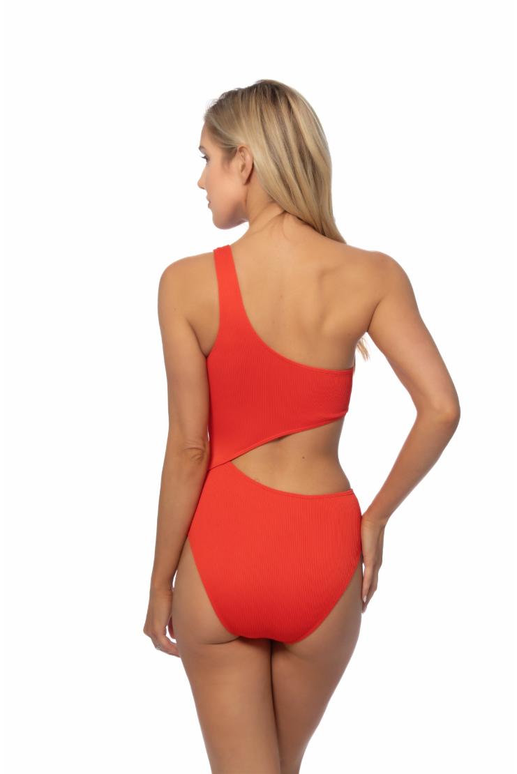 Get ready to make a splash with our Red Ribbed One Shoulder Cut Out One Piece Swimsuit! This playful suit features a unique one shoulder design and cheeky cut outs to keep things interesting. Stay stylish and confident all summer long in this must-have swimsuit.