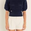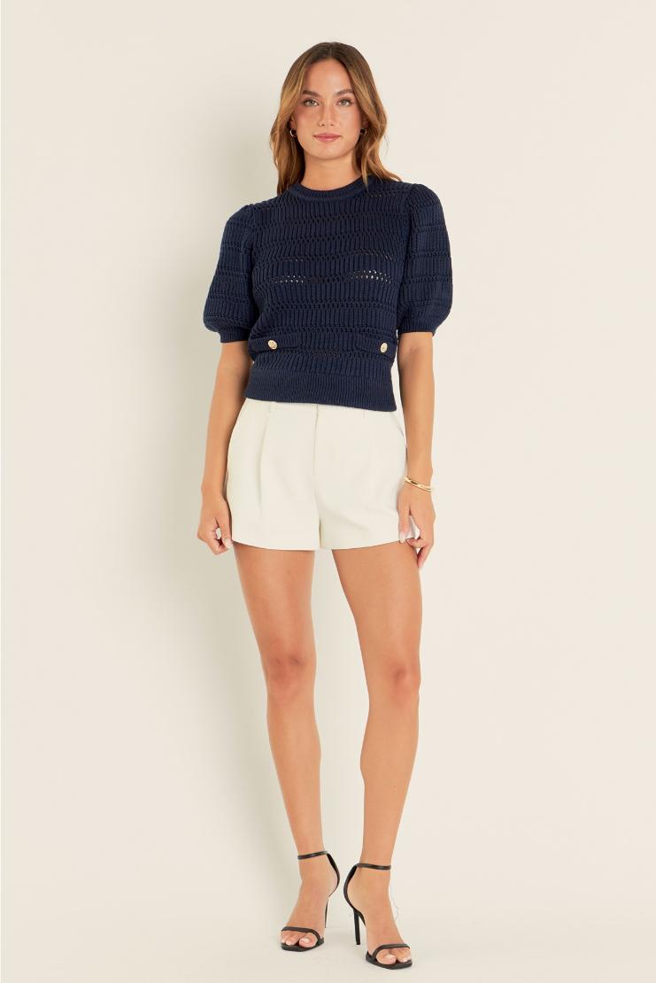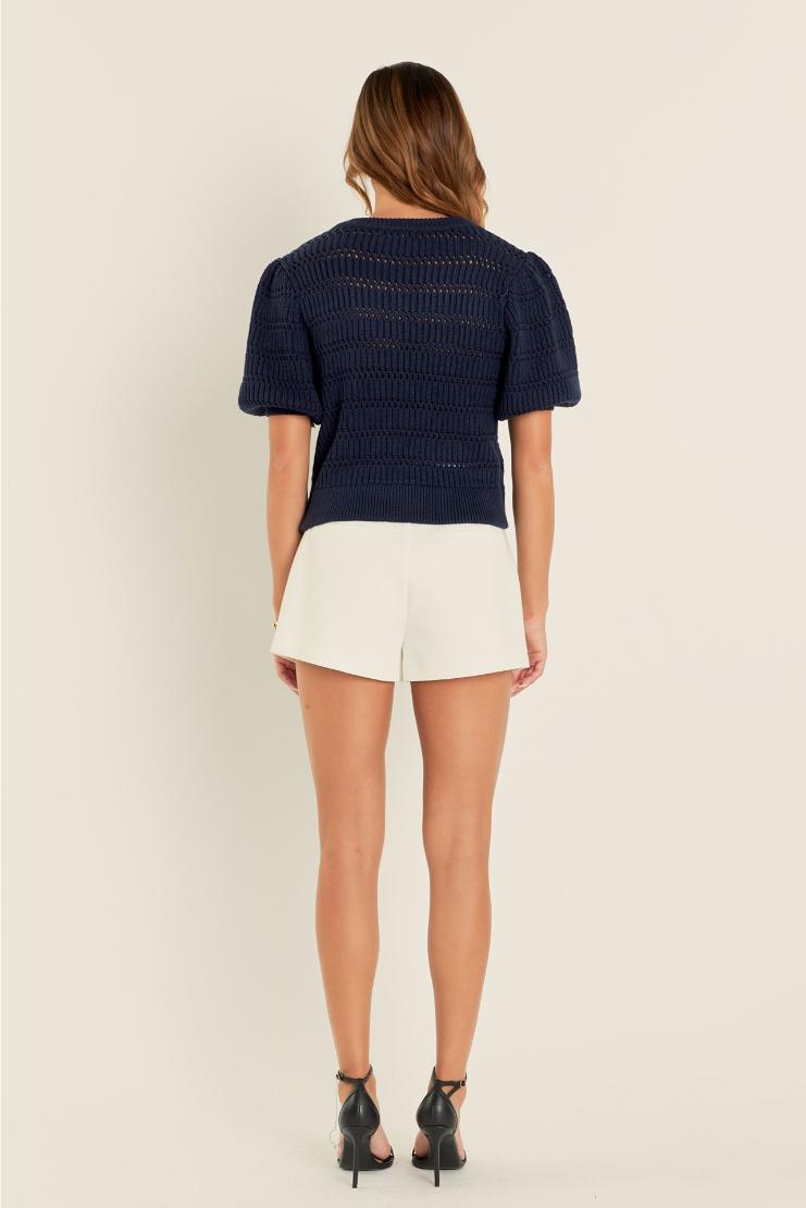 This Navy Knit Puff Sleeve Sweater Top is the perfect addition to your wardrobe. The playful puff sleeves add a touch of charm to this classic sweater, making it a versatile piece for any occasion. Stay cozy and stylish with this quirky top!