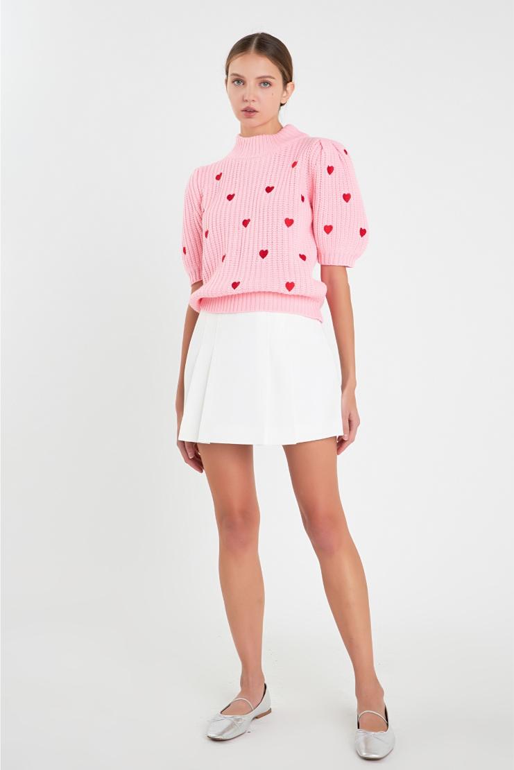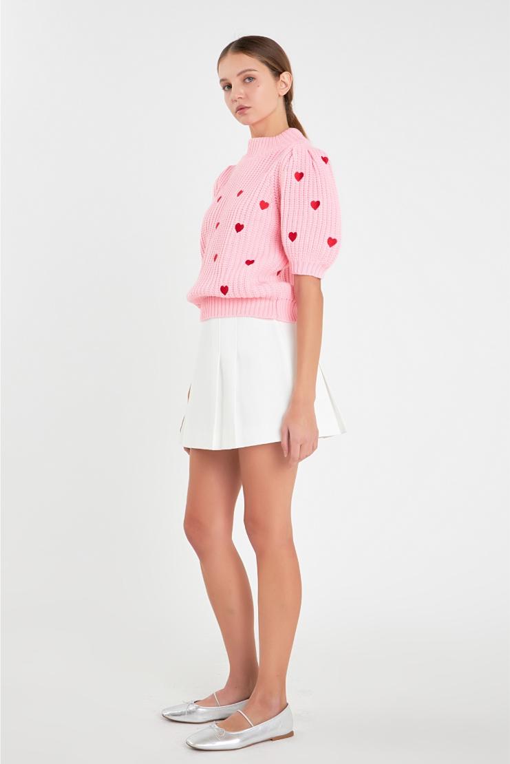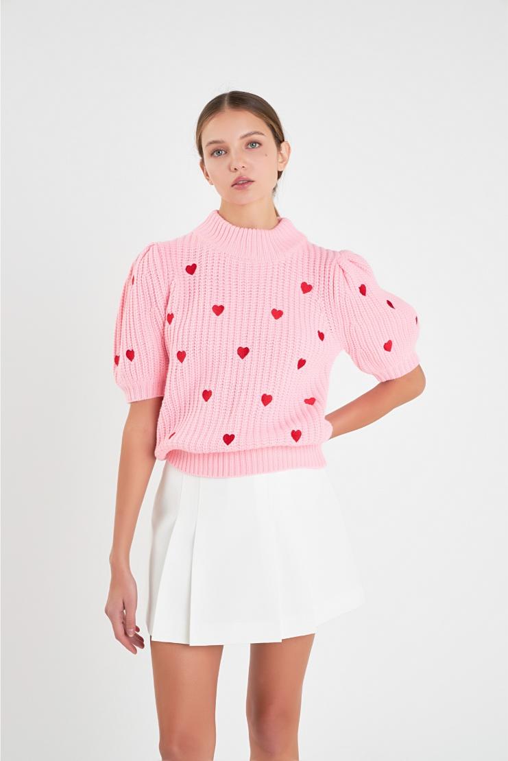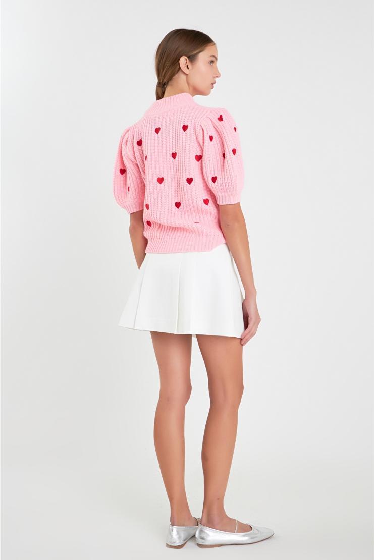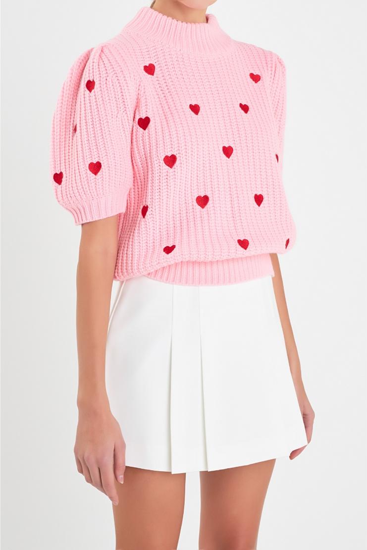 Show your heart some love with our Farrah Red Mini Hearts Short Sleeve Sweater in Ivory! Made with a cozy knit, this playful and fun sweater features charming mini heart designs and a comfortable short sleeve design. Perfect for adding a touch of whimsy to any outfit!