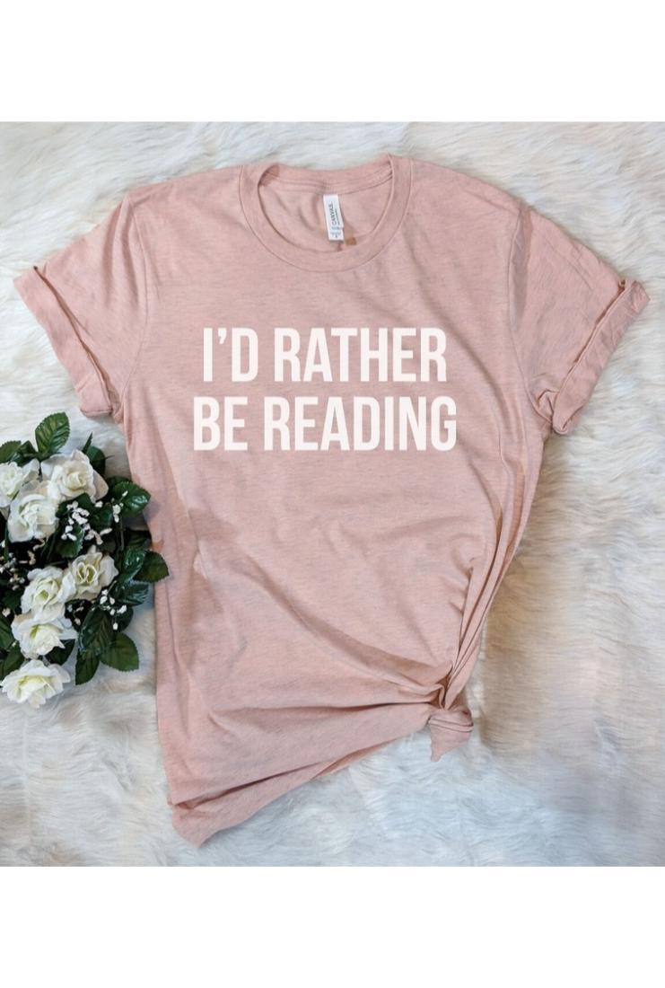 Show off your love for books with this playful pink tee featuring the cheeky “I’d Rather Be Reading” graphic. Perfect for cozy days, it’s a fun way to declare your bookworm status while staying comfy and stylish.