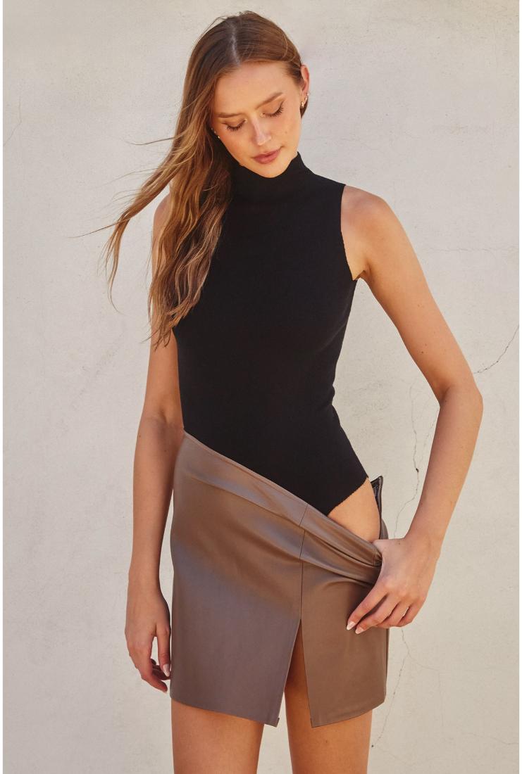 Elevate your everyday style with the Joy Mock Neck Knit Bodysuit in classic black. This sleek, form-fitting piece combines cozy knit comfort with a chic mock neck, making it perfect for layering or wearing solo. Its effortless design hugs your silhouette while keeping you warm, so you can play up your look with ease and confidence. Whether paired with jeans or a skirt, it’s a versatile must-have that adds a playful touch to any outfit.