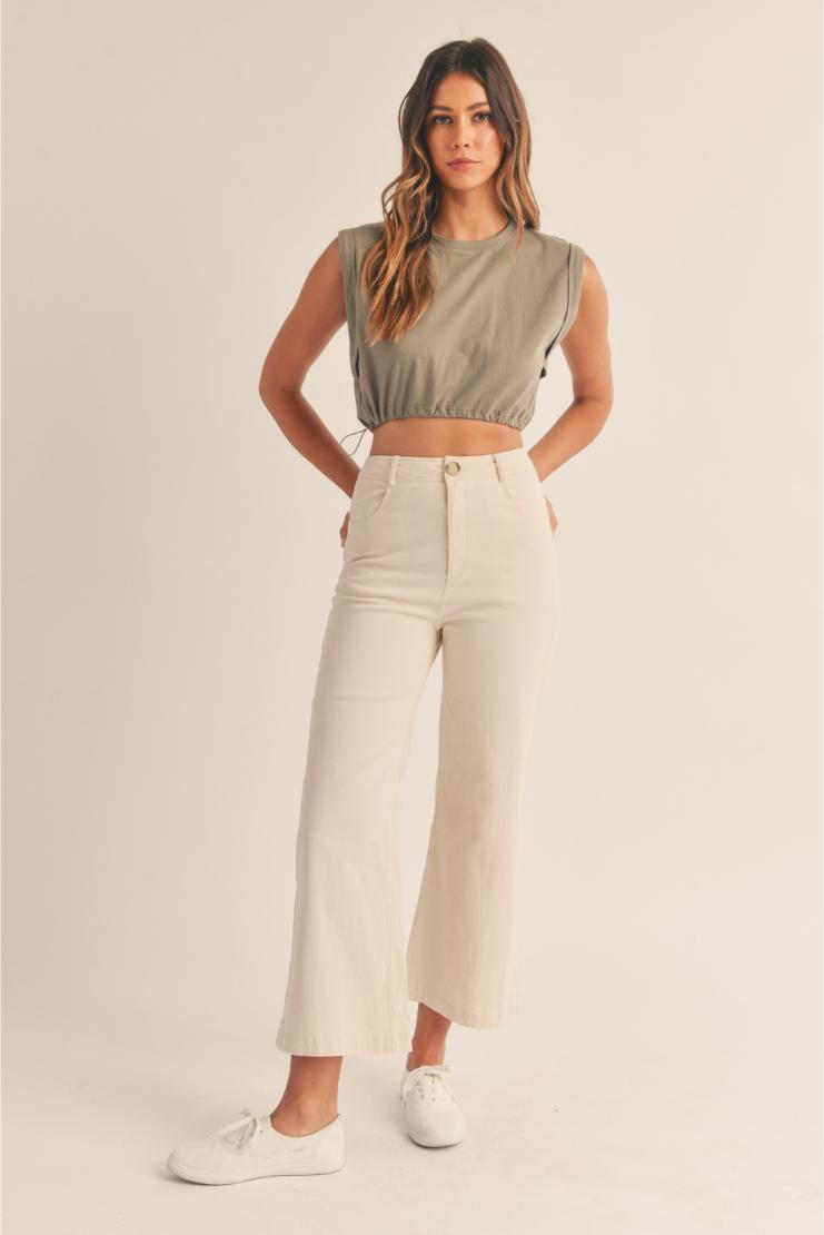 Get ready to strut in style with these Beige Wide Leg Cropped Pants! These pants are not only fashionable but also functional, providing a comfortable wide leg fit and a cropped length perfect for warmer weather. The neutral beige color makes them a versatile addition to any wardrobe.