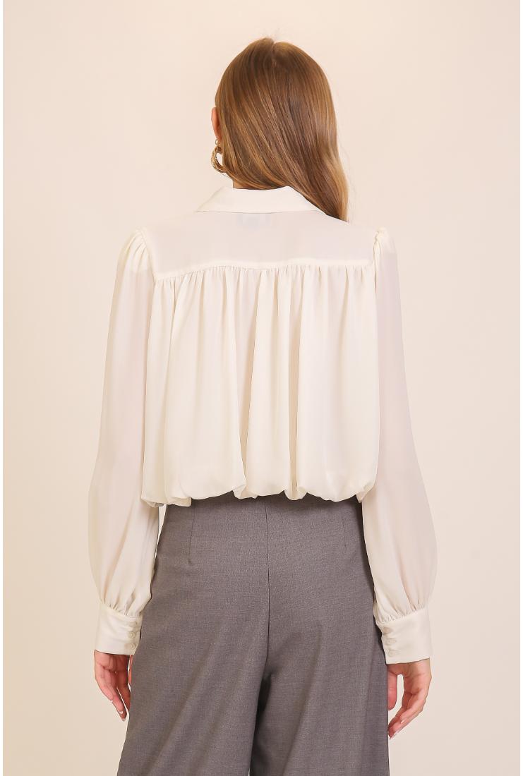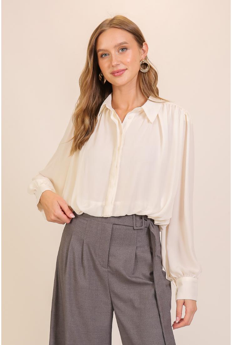 The Madeliene Long Sleeve Button Up Blouse in Ivory brings a fresh twist to classic style. Its smooth fabric and crisp buttons create a playful yet polished look perfect for everything from brunch to boardrooms. Light, breezy, and easy to dress up or down, this blouse adds a touch of effortless charm to your wardrobe.