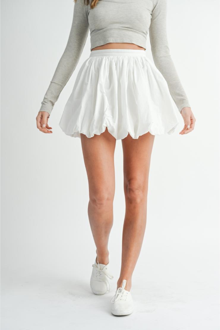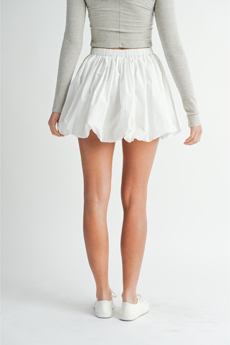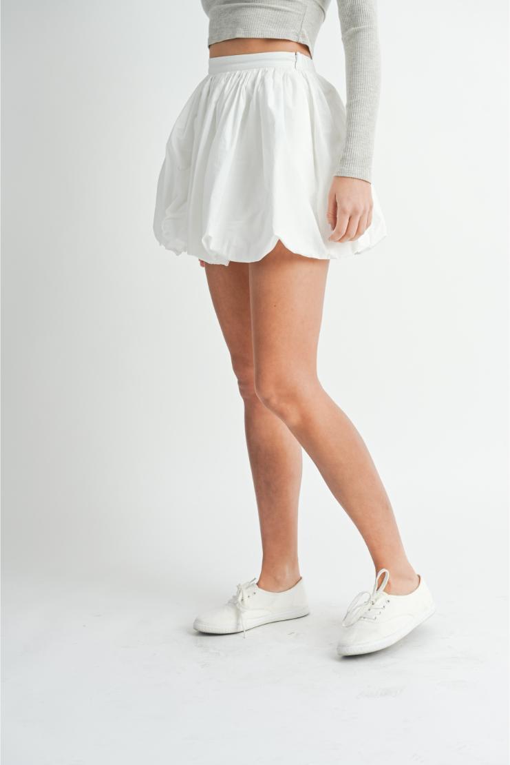This skirt is popping (literally)! Made from a crisp white poplin fabric, our Bubble Hem Mini Skirt adds just the right amount of flare to your look. Perfect for twirling (and standing out) in any setting.