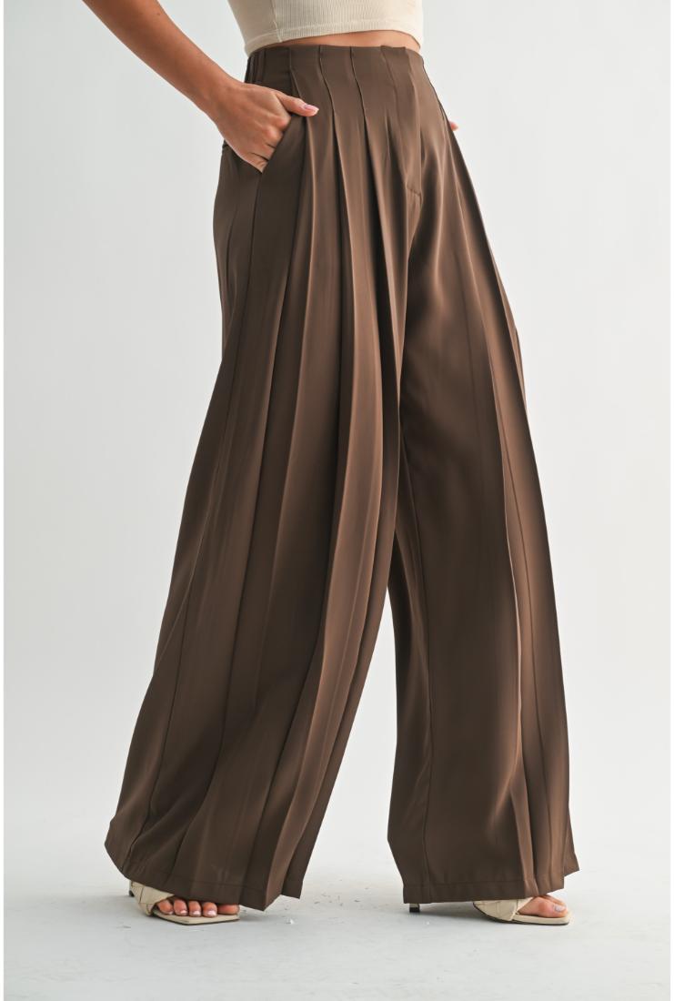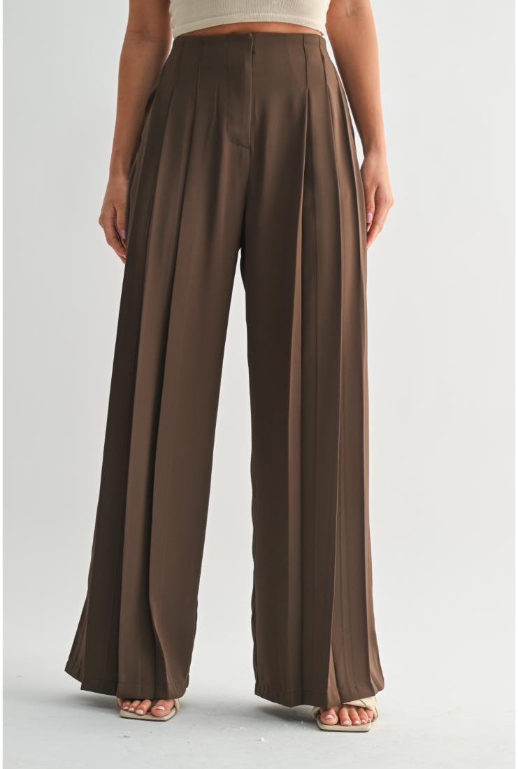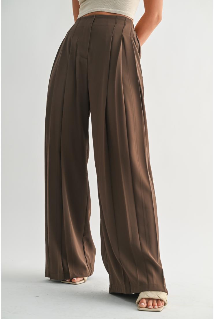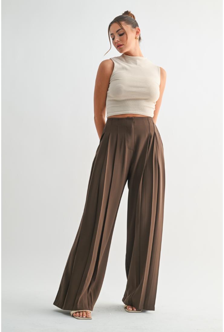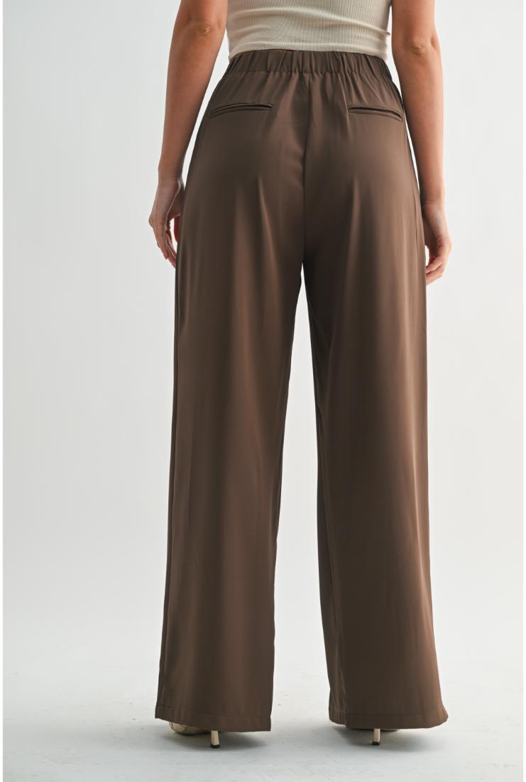 Timeless ease meets understated tailoring in the Arden Pleated Trouser. Designed with sharp front pleats, a relaxed wide-leg silhouette, and a comfortable elasticized back waistband, these pants offer a versatile fit that moves effortlessly from day to night. Finished with discreet side pockets and back welt pockets for a polished yet wearable touch.
