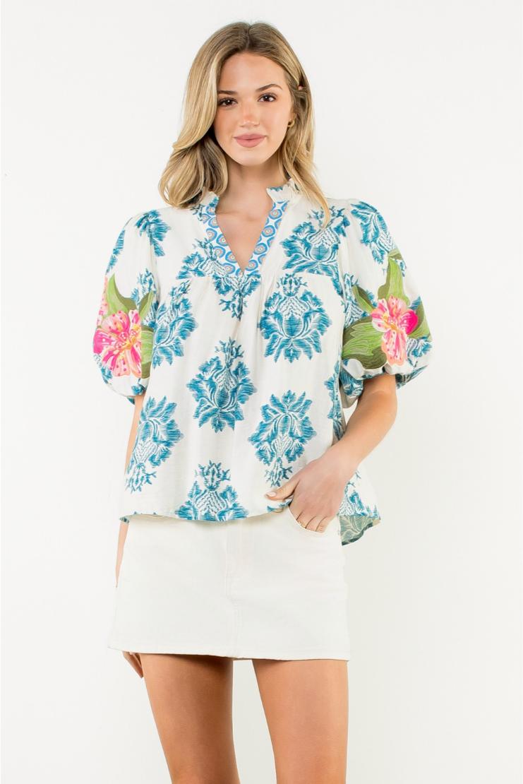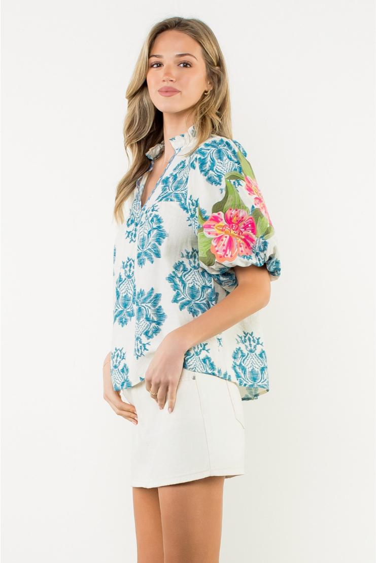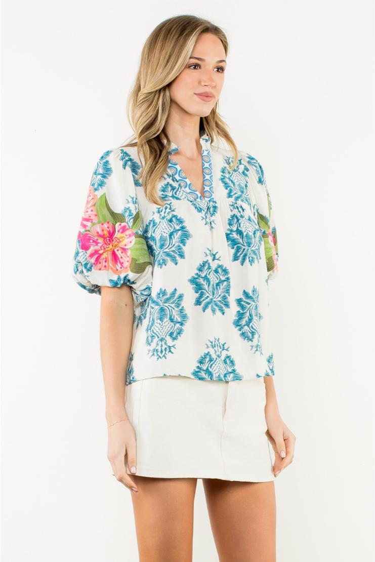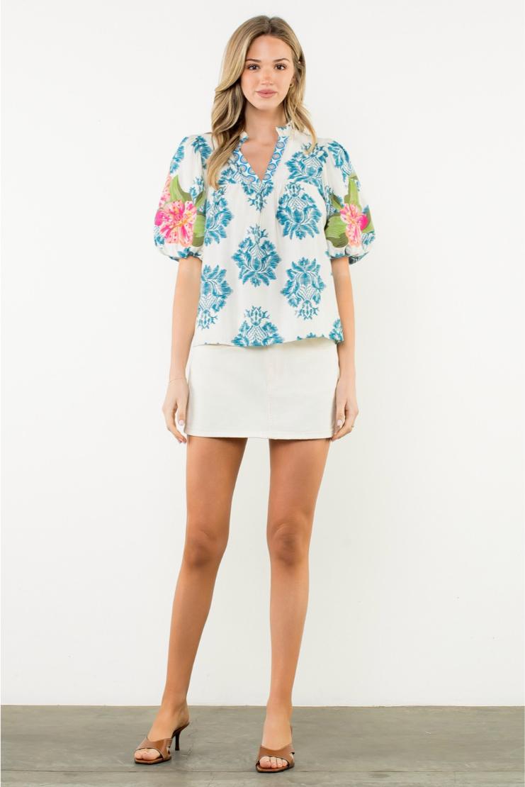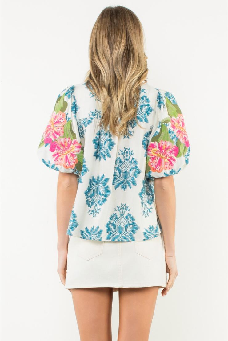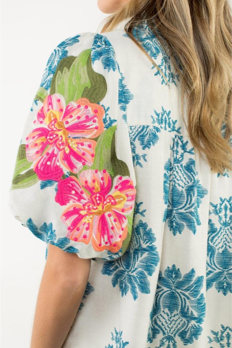 Add a touch of whimsy to your wardrobe with the Raya Embroidered Puff Sleeve Top. Its charming puff sleeves and delicate embroidery create a playful, feminine look perfect for sunny days and casual outings. Lightweight and breezy, this top pairs effortlessly with your favorite jeans or skirts for an easygoing, stylish vibe.