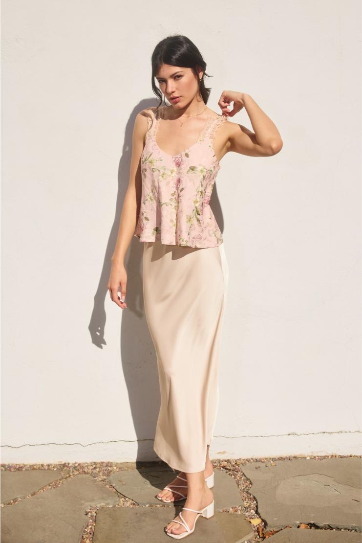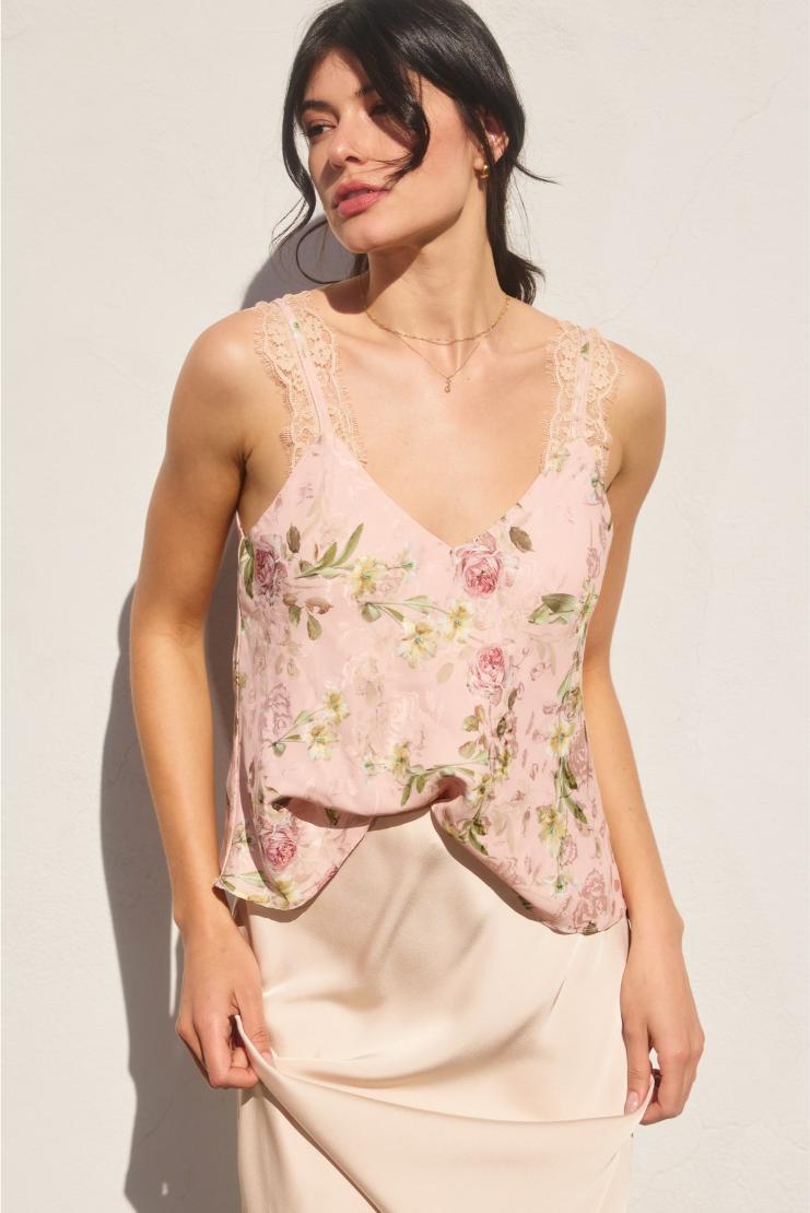 Experience luxury and refinement with our Rebecca Floral Lacey Satin Cami. Featuring delicate lace details and smooth satin fabric, this cami elevates any outfit. Indulge in the exquisite feel and intricate design of this exclusive piece.