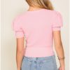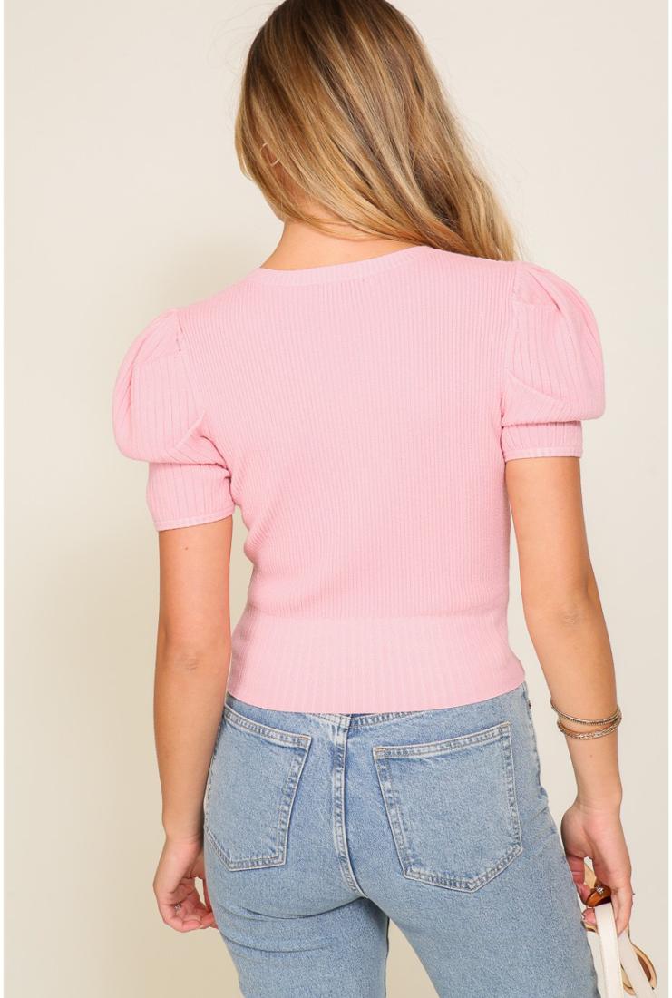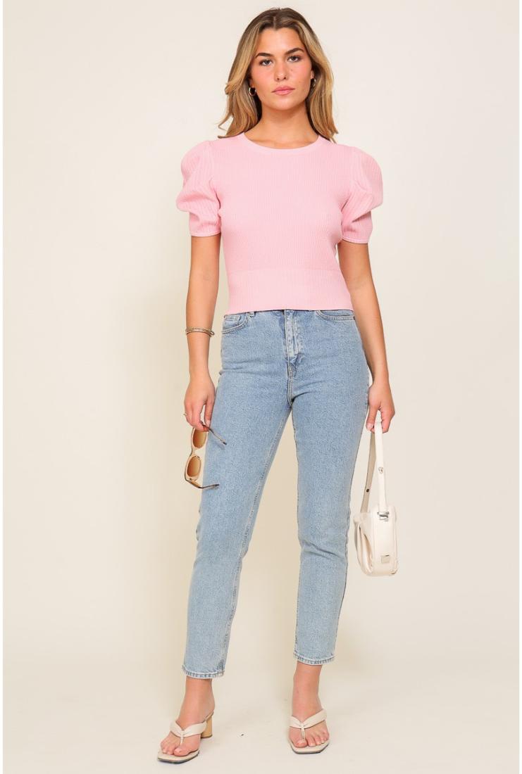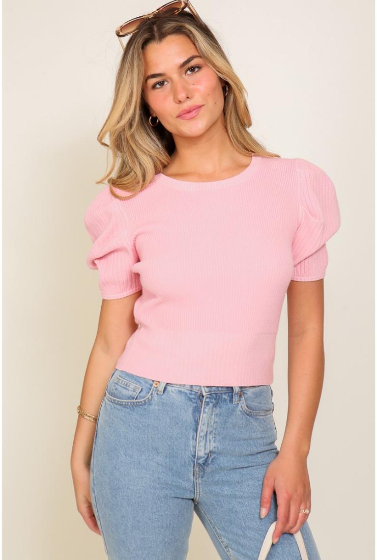 Add a pop of fun to your wardrobe with the Sadie Puff Short Sleeve Knit Crop Top in pink. Its playful puff sleeves and cozy knit fabric make it perfect for sunny days and casual outings. This crop top pairs effortlessly with high-waisted jeans or skirts, bringing a flirty, fresh vibe to any look. Embrace comfort and style in one charming piece!