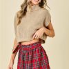 Stay cozy and stylish in our Taupe Sleeveless Boxy Turtleneck Cropped Sweater! This trendy crop top features a sleeveless design and a comfortable turtleneck, perfect for cooler days. Embrace your playful side with this quirky and versatile piece. (No turtles were harmed in the making of this sweater.)