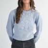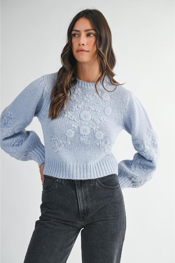 Wrap yourself in charm with the Tia Floral Embroidered Long Sleeve Sweater in light blue. Its delicate floral embroidery adds a whimsical touch, while the cozy fabric keeps you comfortably stylish all day. Perfect for brightening up any outfit, this playful sweater pairs effortlessly with your favorite jeans or skirts for a fresh, fun look.