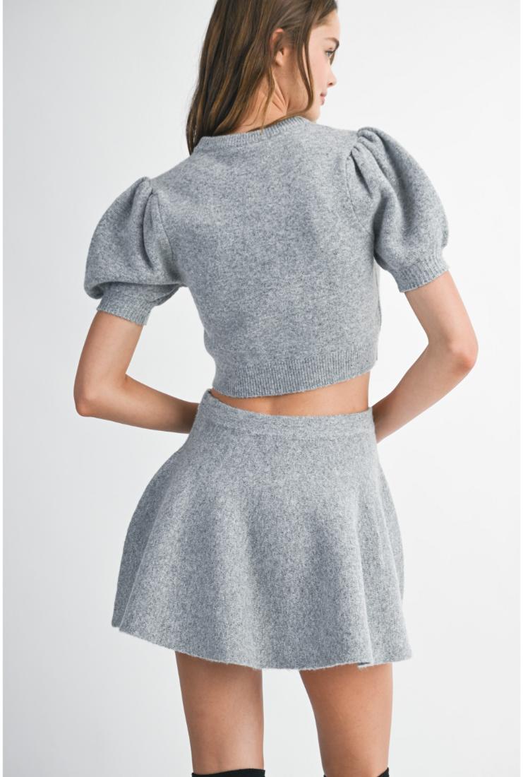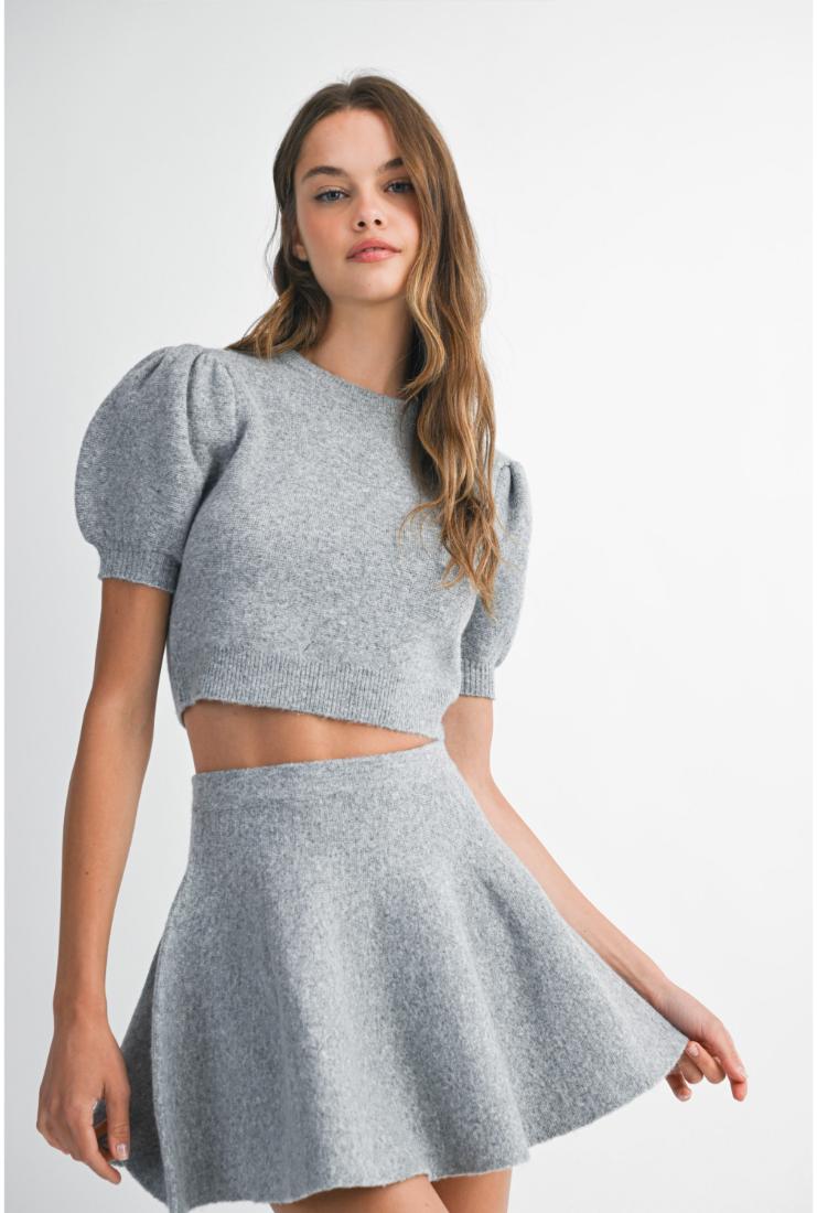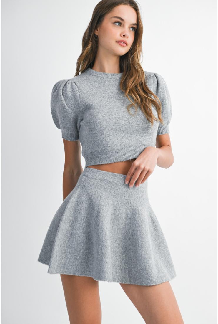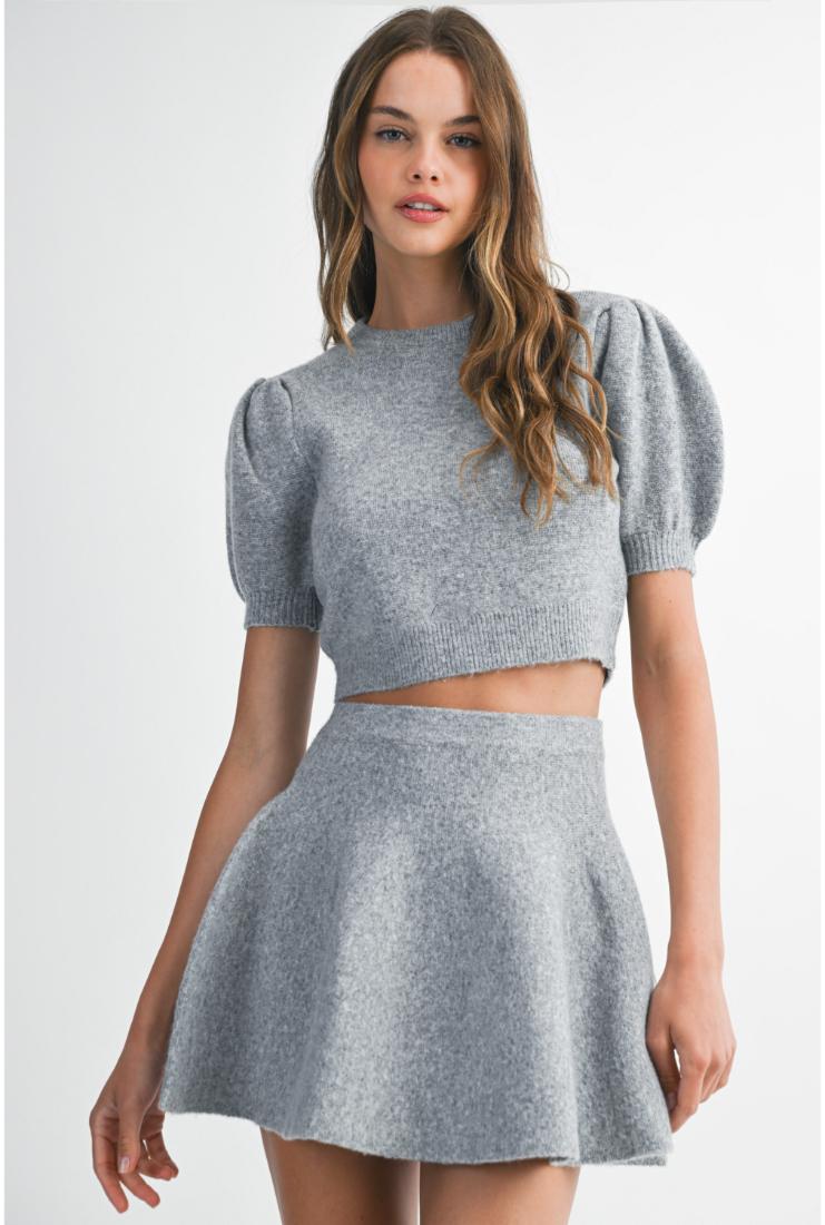 Elevate your style with the Zoie Puff Sleeve Knit Crop Top and Mini Skirt, each sold separately for mix-and-match fun. The crop top features charming puff sleeves that add a flirty touch, while the knit fabric ensures cozy comfort. Pair it with the matching mini skirt for a playful, coordinated look perfect for sunny days or casual outings. Whether worn together or styled individually, these pieces bring a fresh, youthful vibe to your wardrobe.