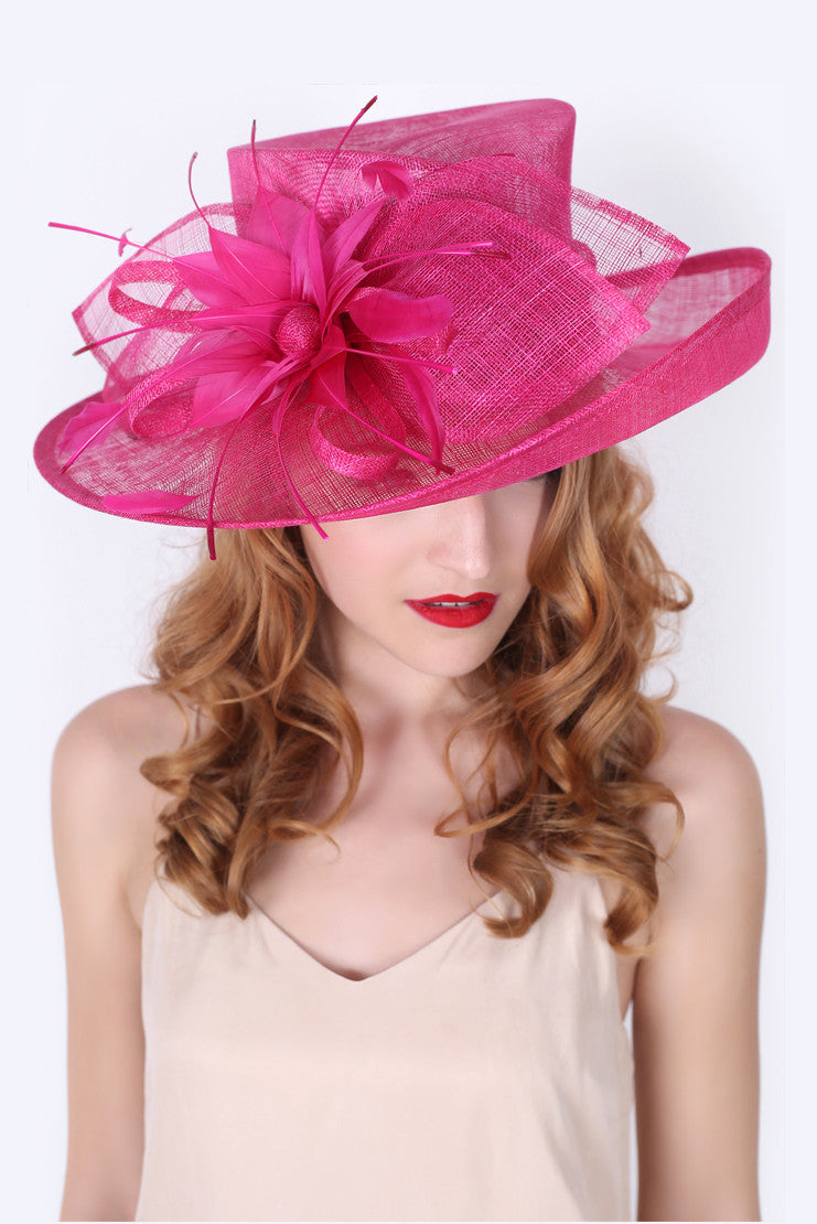 Soak up the sun in the chicest, vintage-styled sun hat. This hat has a slightly flipped brim silhouette, large mesh petals that make a statement not to be messed with and topped off with a delicate feather flower. This glam style features day-to-dark versatility for the perfect derby queen look!