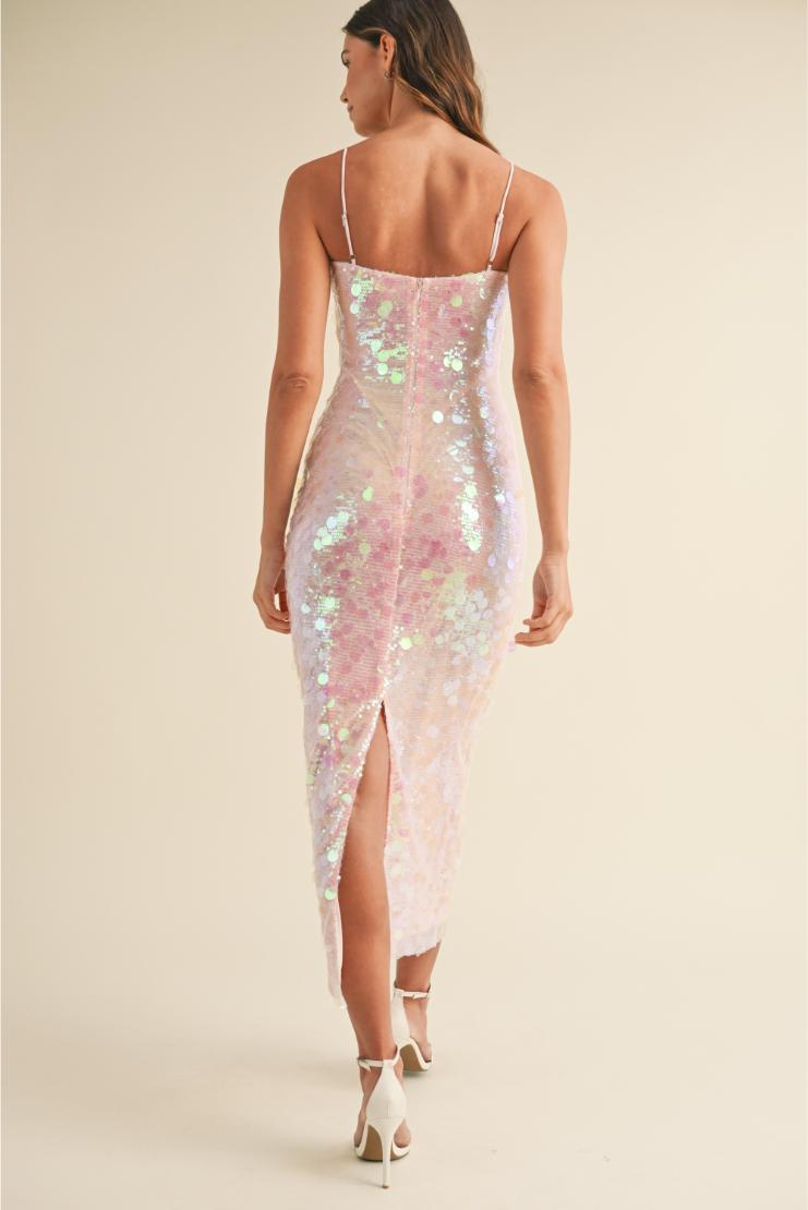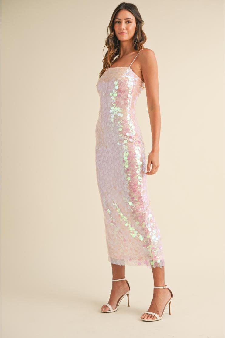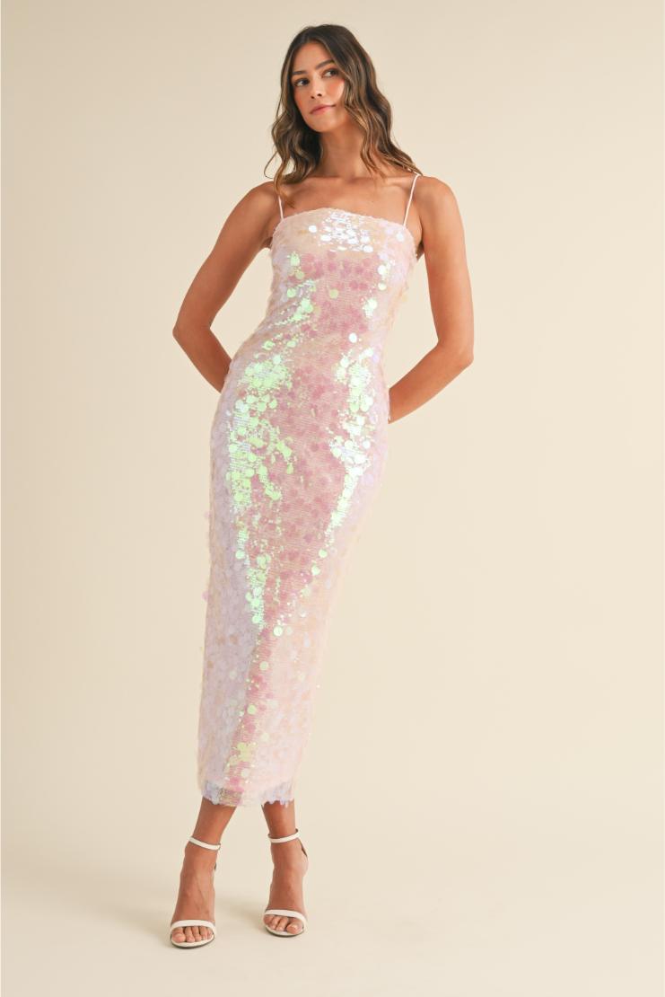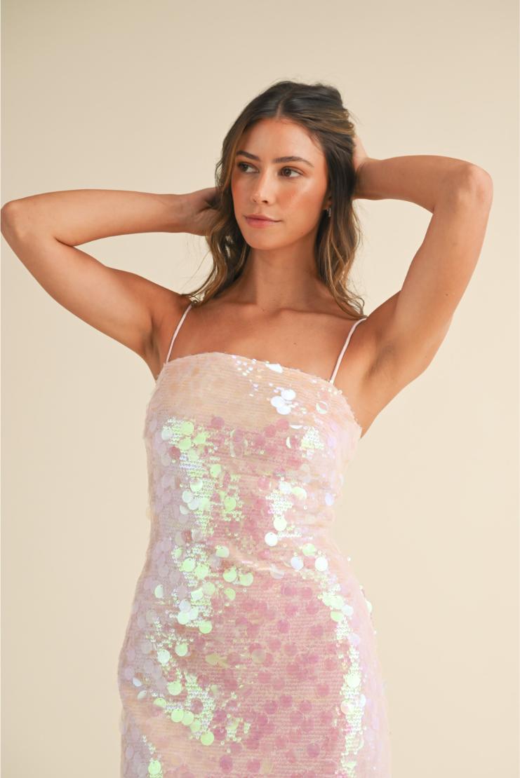 Pippa & Pearl Women’s Dresses Alicia Large Disc Sequin Spaghettie Strap Maxi Dress | Pink