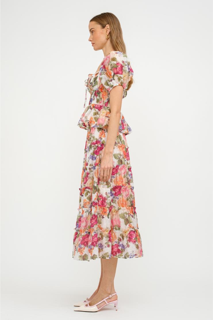 Get ready to twirl in the Eloise Tiered Flow-y Floral Peplum Top! With its flowy, tiered design and playful floral pattern, this top is perfect for adding a touch of whimsy to any outfit. The peplum style also flatters your figure, making you feel confident and stylish. Step into this top and get ready to bloom!