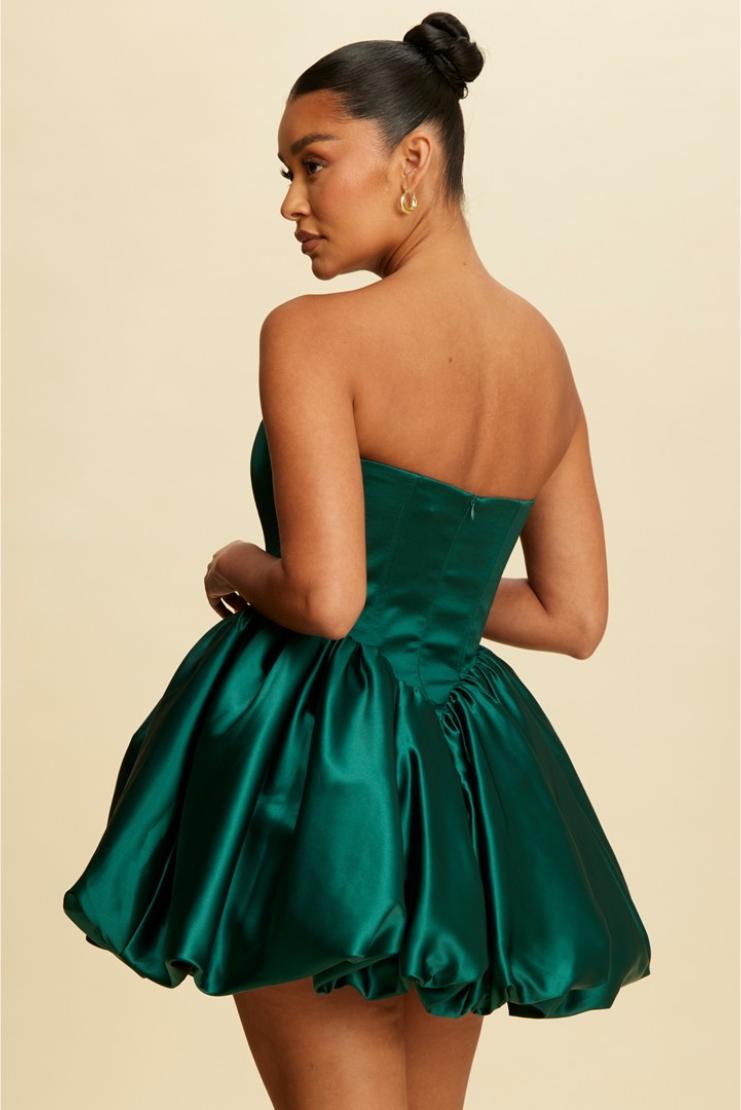 Pippa & Pearl Women’s Dresses Emerald City Satin Balloon Puff Mini | Emerald Green
