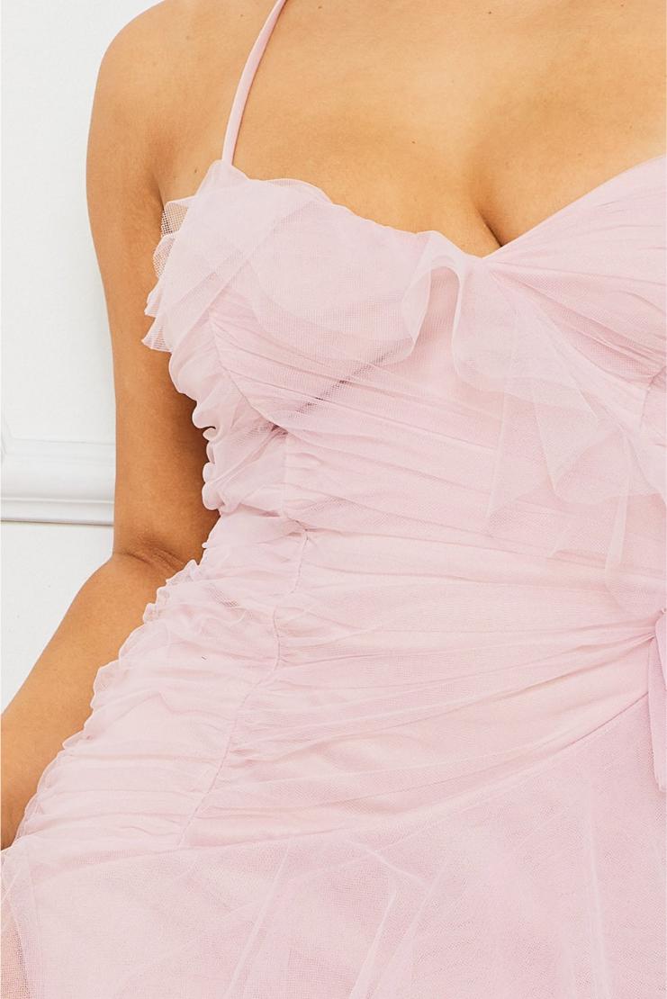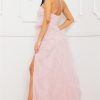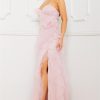 Royal rows of ruffles inform this alluring gown, made of dreamy tulle and with a rose detail for a look that will crown you belle of the ball.