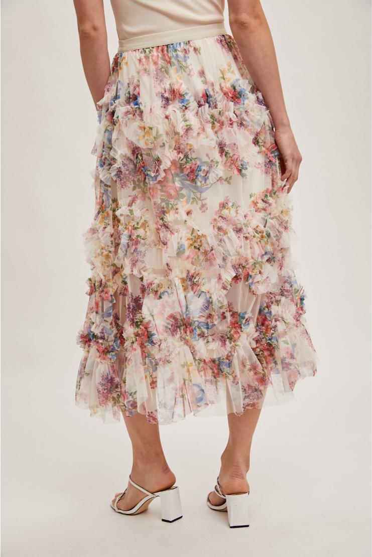Unleash your inner flower power with our Lana Floral Ruffled Mesh Midi Skirt! Featuring a unique ruffled design and lightweight mesh material, this skirt is perfect for twirling and adding a touch of whimsy to any outfit. Embrace your quirky side and stand out from the crowd with this playful and stylish piece.