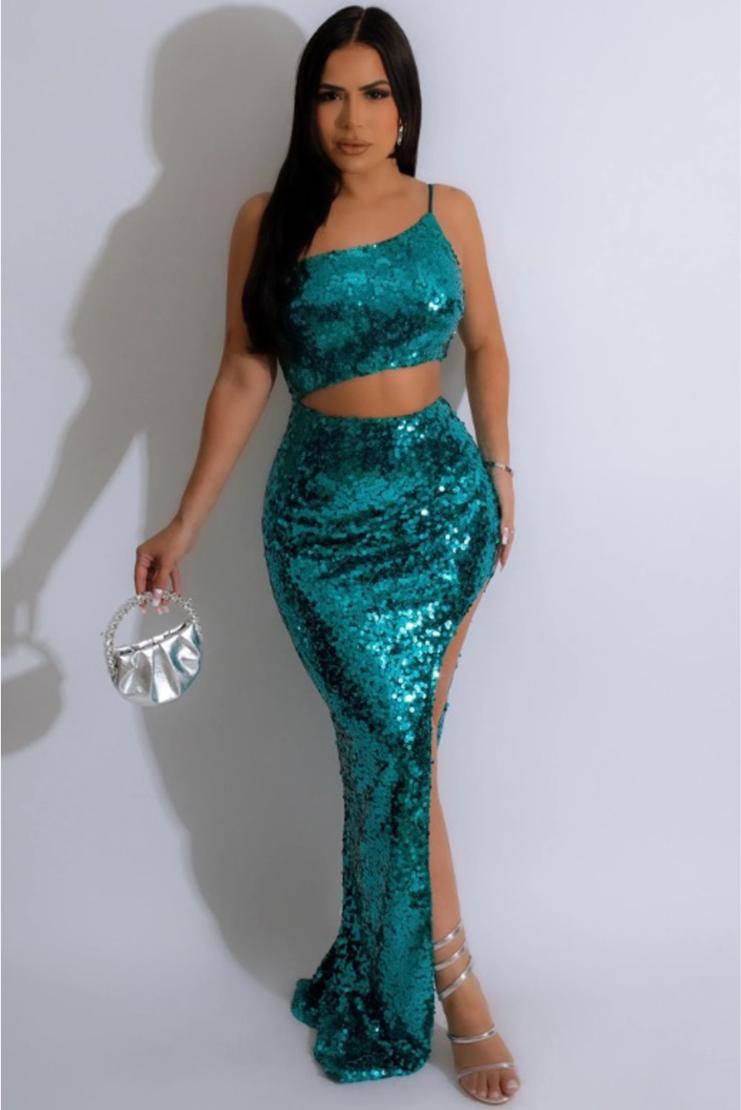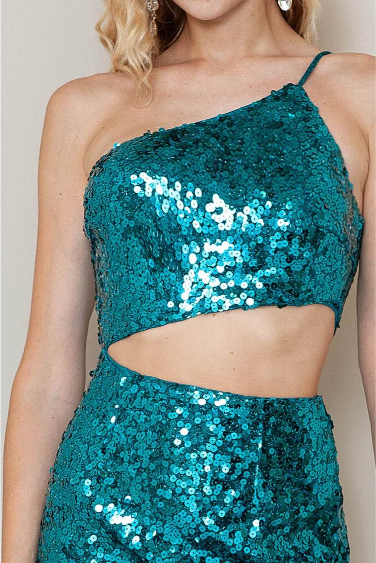 Indulge in ultimate glamour with our Lexi Sequin One Shoulder Maxi Gown in Teal. This exquisite piece features intricate sequin detailing, a stylish one shoulder design, and a flowy maxi silhouette. Feel like a true diva at any special event in this luxurious and timeless gown.