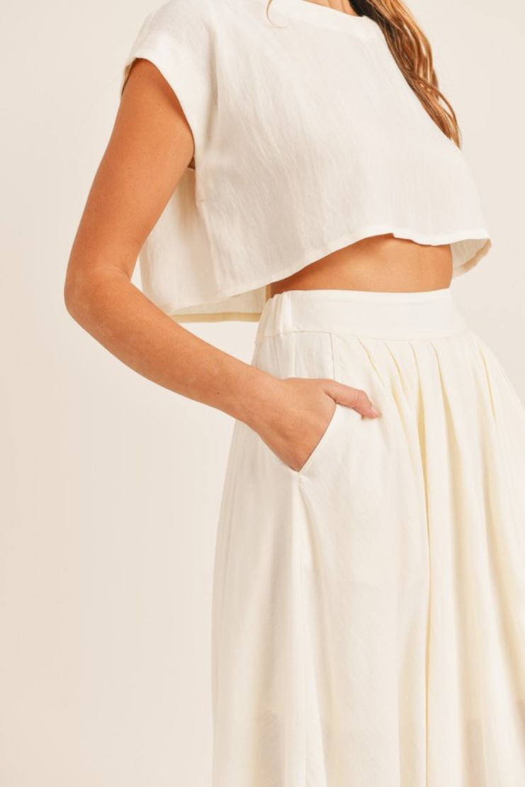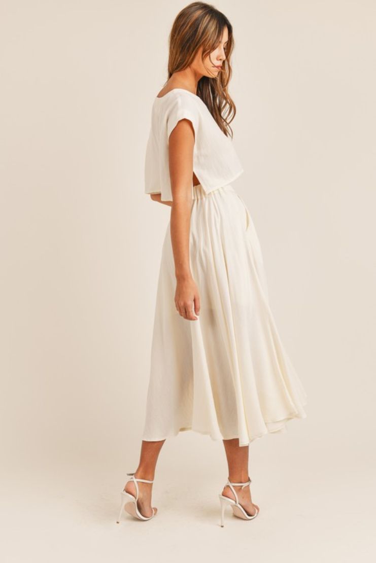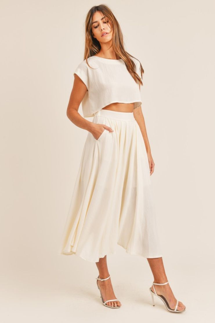 Linen was made for summery weather, and this classic fit-and-flare skirt and crop top set lets you enjoy every sunny day in feminine style.