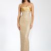 Step into the spotlight with the Marilyn Gold Satin Sequin & Pearls Maxi Dress. This dazzling gown combines shimmering gold sequins with delicate pearl accents, creating a captivating glow that’s perfect for any festive occasion. The smooth satin fabric glides over your silhouette, while the maxi length adds a touch of elegance and drama. Celebrate your unique sparkle and dance the night away in style!