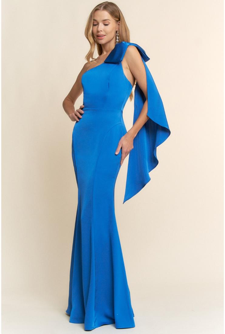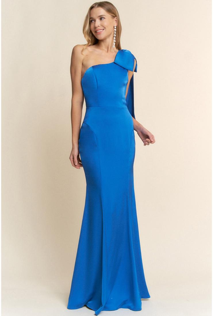 Elevate your evening wardrobe with the Roxy One Shoulder Sash Bow Satin Maxi Dress in Royal Blue. This elegant gown features a graceful one-shoulder design accented by a sash bow, creating a striking silhouette. Crafted from smooth satin, it drapes beautifully for a refined and polished look, perfect for formal events or special occasions. The rich royal blue hue adds a timeless touch of sophistication and confidence to your ensemble.