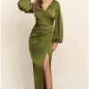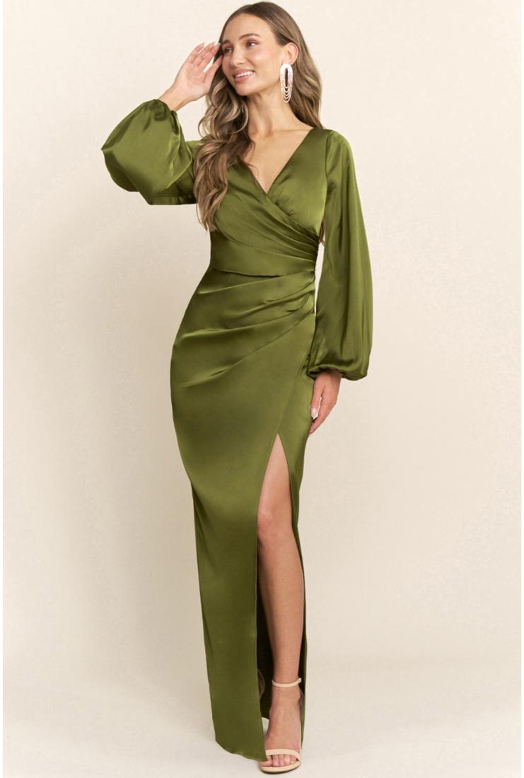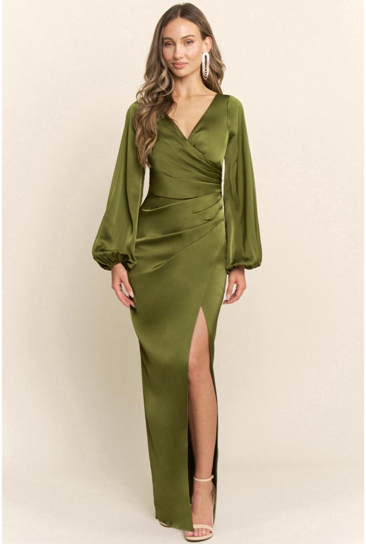 Elevate your evening with the Sloane Long Sleeve Satin Maxi Dress in Olive Green. Its fluid satin fabric drapes elegantly, while the long sleeves offer a refined silhouette, perfect for sophisticated occasions. The rich berry hue adds a touch of timeless allure, ensuring you stand out with effortless grace.