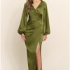 Elevate your evening with the Sloane Long Sleeve Satin Maxi Dress in Olive Green. Its fluid satin fabric drapes elegantly, while the long sleeves offer a refined silhouette, perfect for sophisticated occasions. The rich berry hue adds a touch of timeless allure, ensuring you stand out with effortless grace.