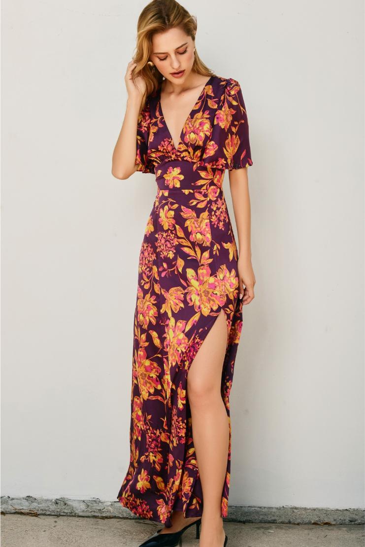 Step into autumn elegance with the Talia Fall Florals Satin Bell Sleeved Maxi Dress. This playful maxi combines silky satin with charming bell sleeves and a vibrant floral print, perfect for twirling through crisp fall days. Lightweight and flowy, it offers comfortable movement while making every occasion feel special. Embrace the season with a dress that’s as lively and graceful as you are!