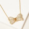 Add a touch of whimsy and elegance to your outfit with this Gold Bow and Pearl Chain Necklace. Featuring a delicate gold bow and a string of lustrous pearls, this necklace is perfect for any special occasion or for adding a touch of fun to your everyday look.
