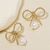 Add a touch of whimsy to your look (without breaking the bank) with these Gold Bow and Pearl Charm Stud Earrings. The twisted ribbon bow design adds a playful element, while the pearl charm adds a touch of elegance. Perfect for any occasion!