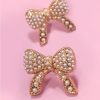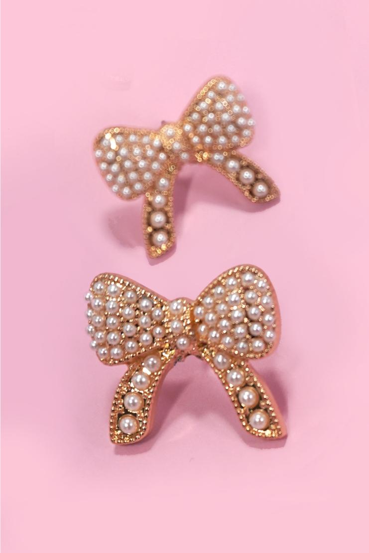 Add some pizzazz to your outfit with these Gold Pave Pearl Bow Earrings. These stunning earrings feature a delicate bow design encrusted with dazzling gold pave stones and have a lustrous pearl drop. Elevate any look with a touch of sparkle and elegance. Perfect for any occasion!