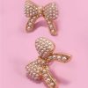 Add some pizzazz to your outfit with these Gold Pave Pearl Bow Earrings. These stunning earrings feature a delicate bow design encrusted with dazzling gold pave stones and have a lustrous pearl drop. Elevate any look with a touch of sparkle and elegance. Perfect for any occasion!