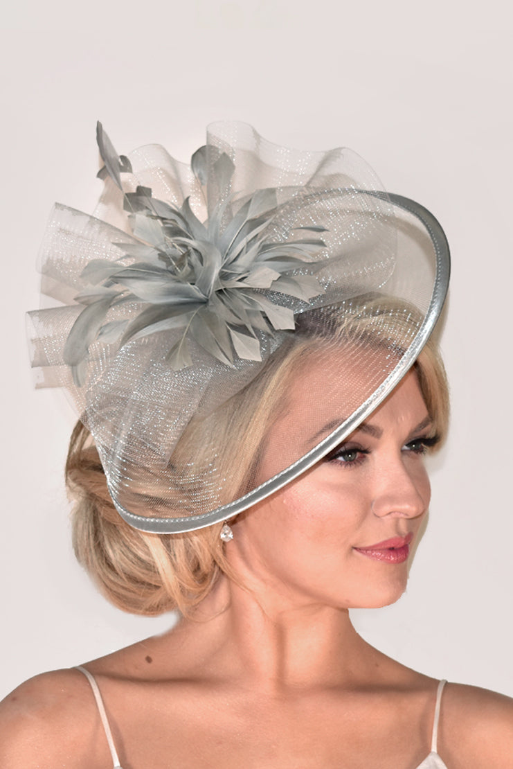 You are a picture of glamorous sophistication when you put on this romantic fascinator! Modern with a vintage touch, this elegant horse hair mesh base adorns a beautiful bouquet of soft feathers. A soft satin trim offers and allure that’s simply breathtaking.