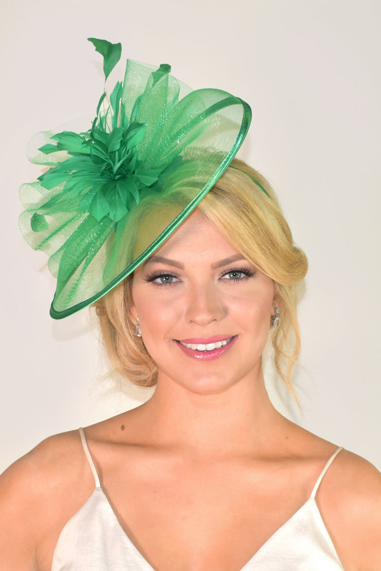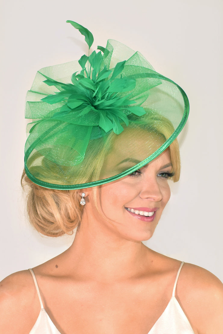 You are a picture of glamorous sophistication when you put on this romantic fascinator! Modern with a vintage touch, this elegant horse hair mesh base adorns a beautiful bouquet of soft feathers. A soft satin trim offers and allure that’s simply breathtaking.