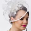 You are a picture of glamorous sophistication when you put on this romantic fascinator! Modern with a vintage touch, this elegant horse hair mesh base adorns a beautiful bouquet of soft feathers. A soft satin trim offers and allure that’s simply breathtaking.