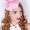 Be the envy of the party in this elegant felt fascinator. The round felt base is covered with satin ribbon loops, adorned with flighty feathers and topped off with a birdcage veil. This gorgeous piece is perfect for any special occasion.