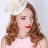 Sophistication meets simply gorgeous! This elegant head piece comes with a flexible, detachable headband for easy storage and travel. The Fascinator couture straw mesh hat measures approximately 9″ x 8″. Adorned with flighty feathers and gorgeous center piece rose made of horsehair, this statement piece is perfect for any special occasion.