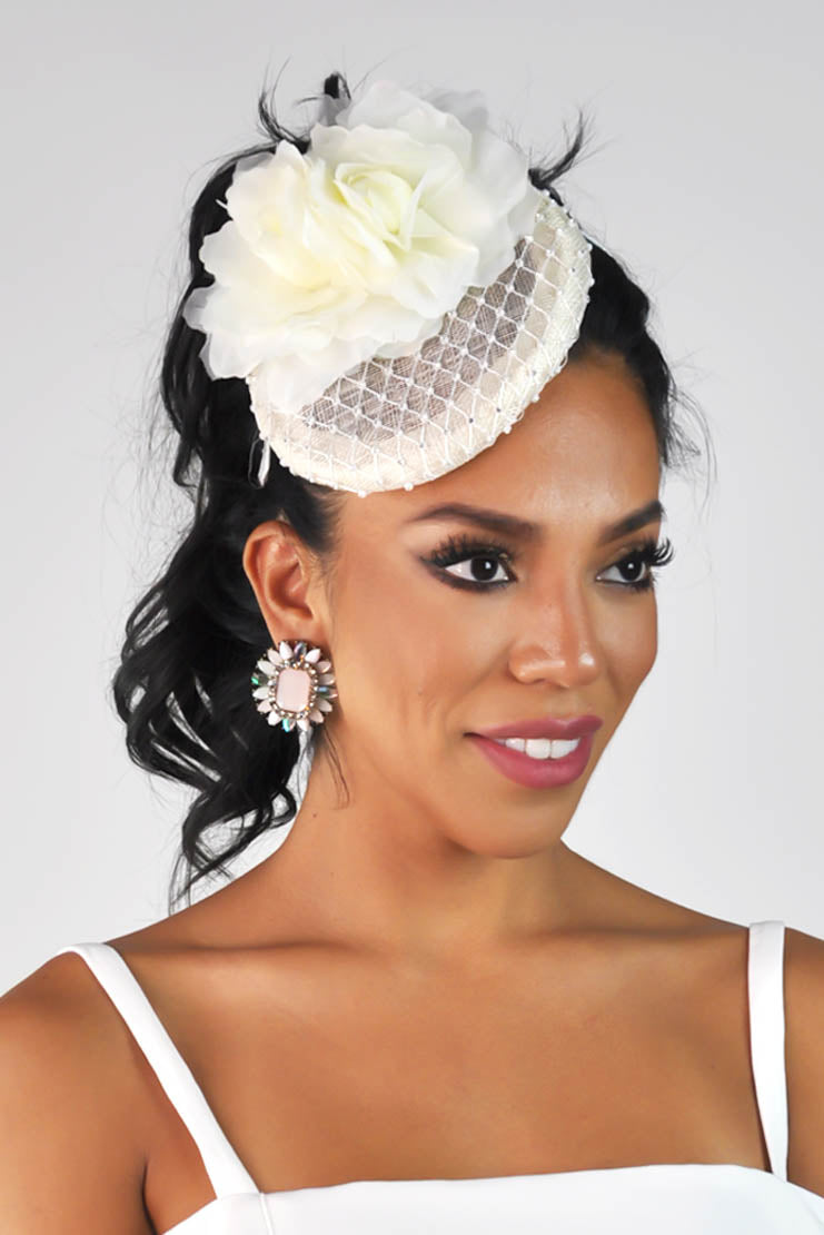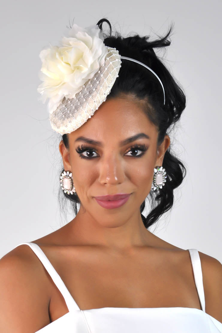 Vintage-inspired floral with a touch of modern rhinestone patter this delicately rendered in disc sinamay fascinator. A perfectly radiant finish for your most special day.