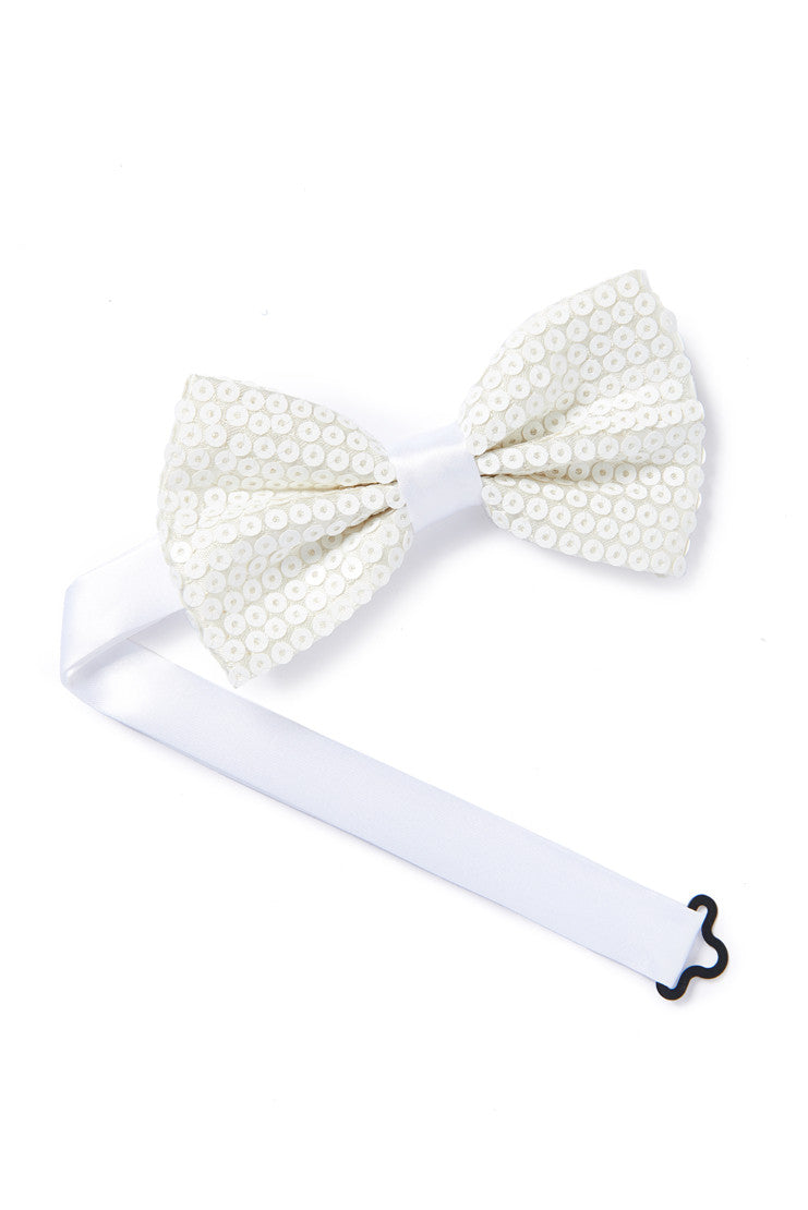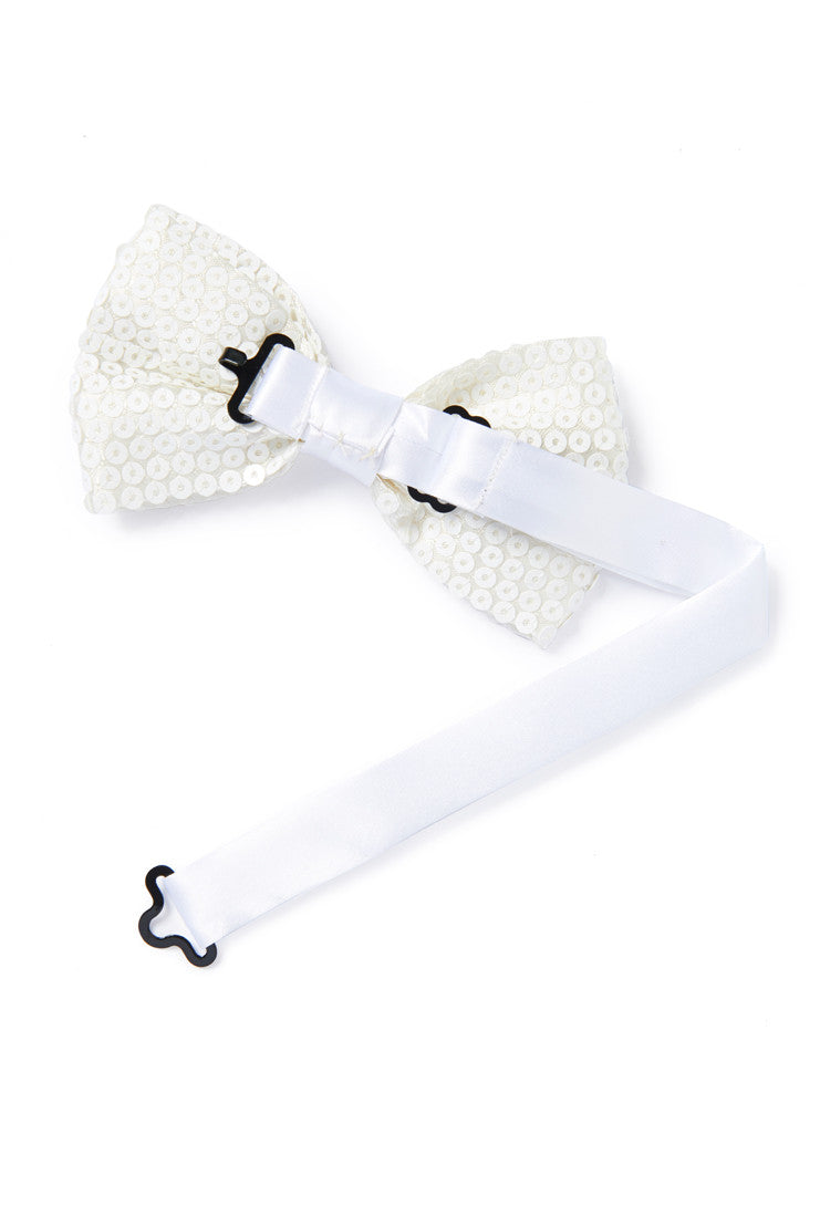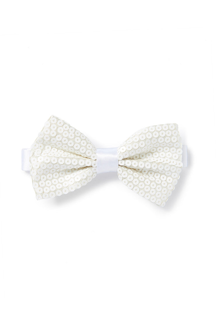 Pippa & Pearl Women’s Men’s Sequin Bow Tie – White | White