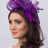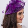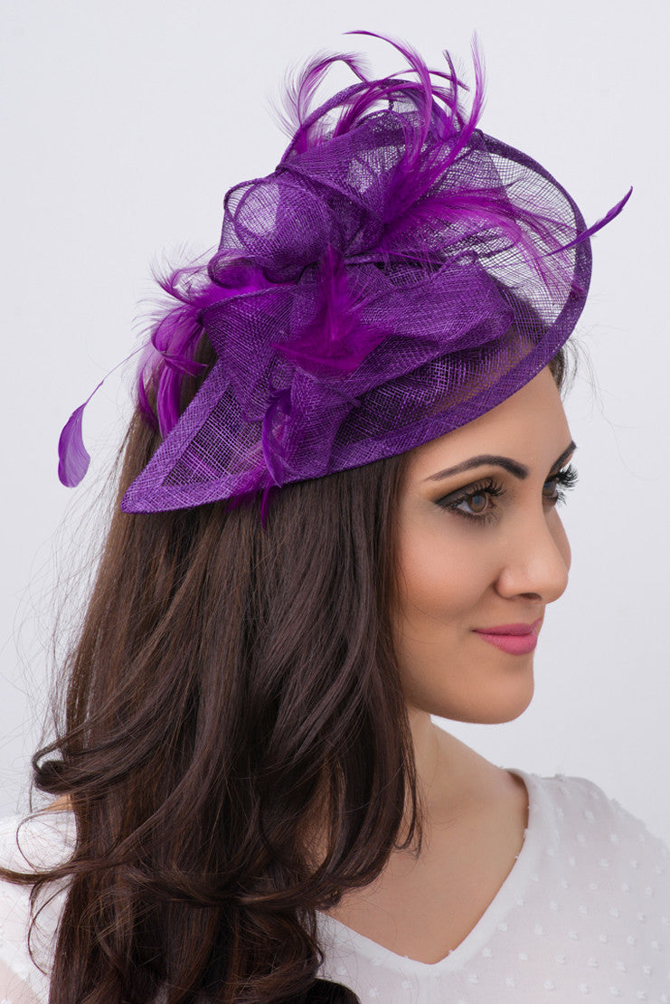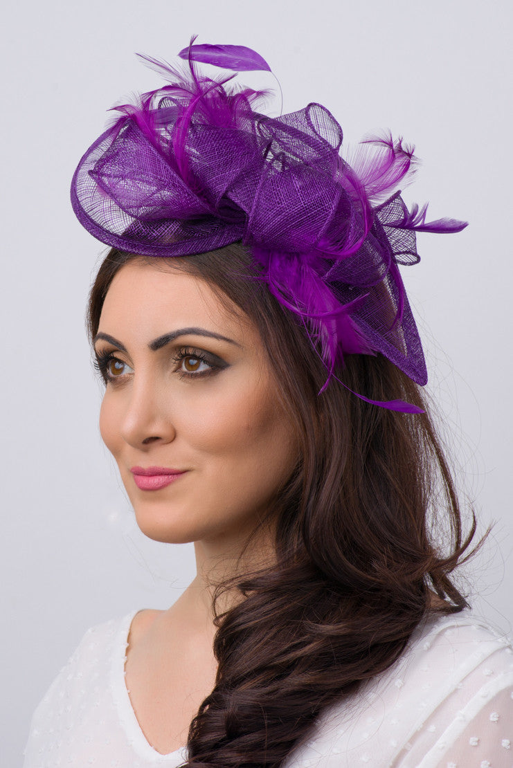 Timeless glamour. This sassy fascinator gives a nod to vintage style with a bouncy mesh ribbon and flighty feathers. With its classic sinamay mesh shape and elegant look it will be your go-to fascinator for the season.