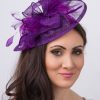 Timeless glamour. This sassy fascinator gives a nod to vintage style with a bouncy mesh ribbon and flighty feathers. With its classic sinamay mesh shape and elegant look it will be your go-to fascinator for the season.