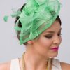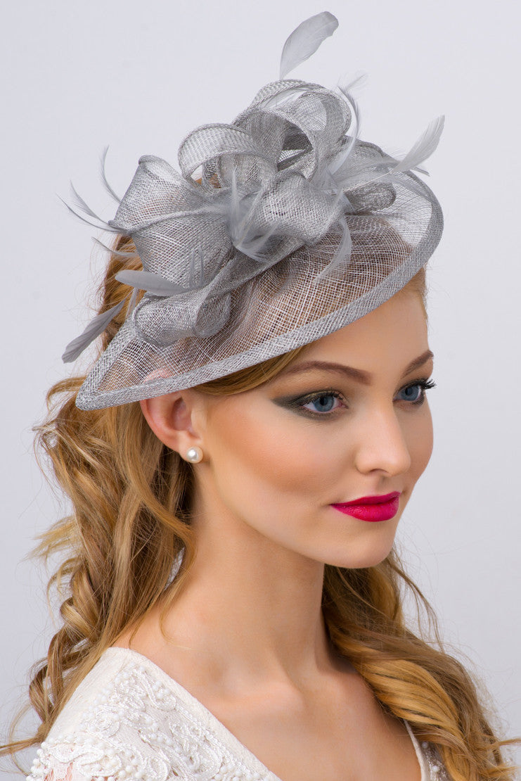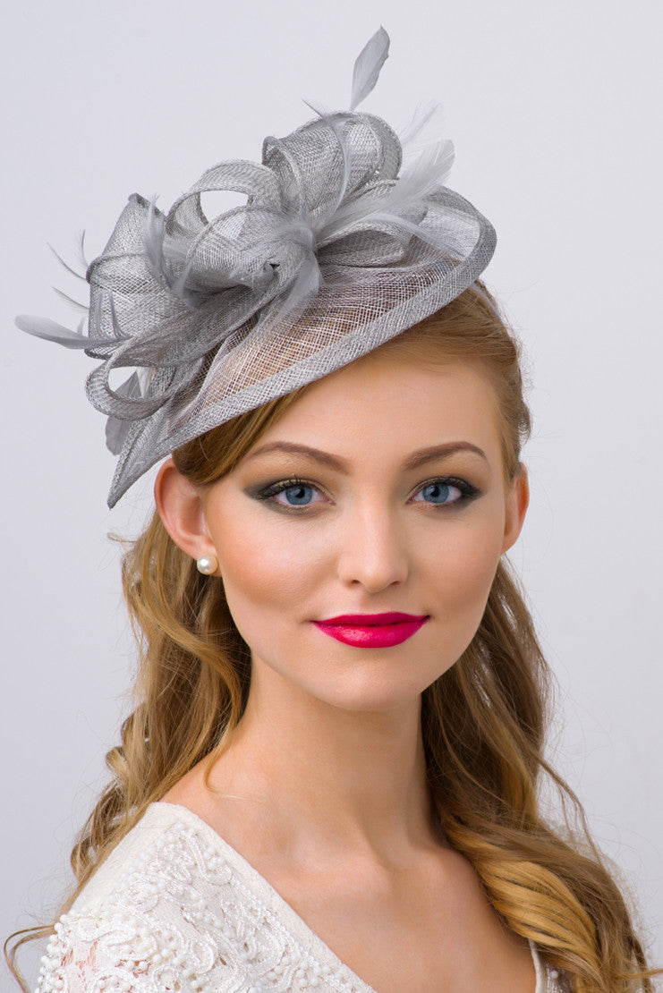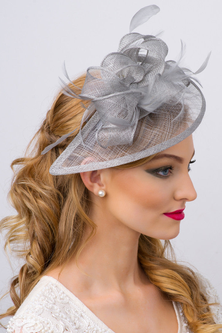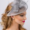 Timeless glamour. This sassy fascinator gives a nod to vintage style with a bouncy mesh ribbon and flighty feathers. With its classic sinamay mesh shape and elegant look it will be your go-to fascinator for the season.